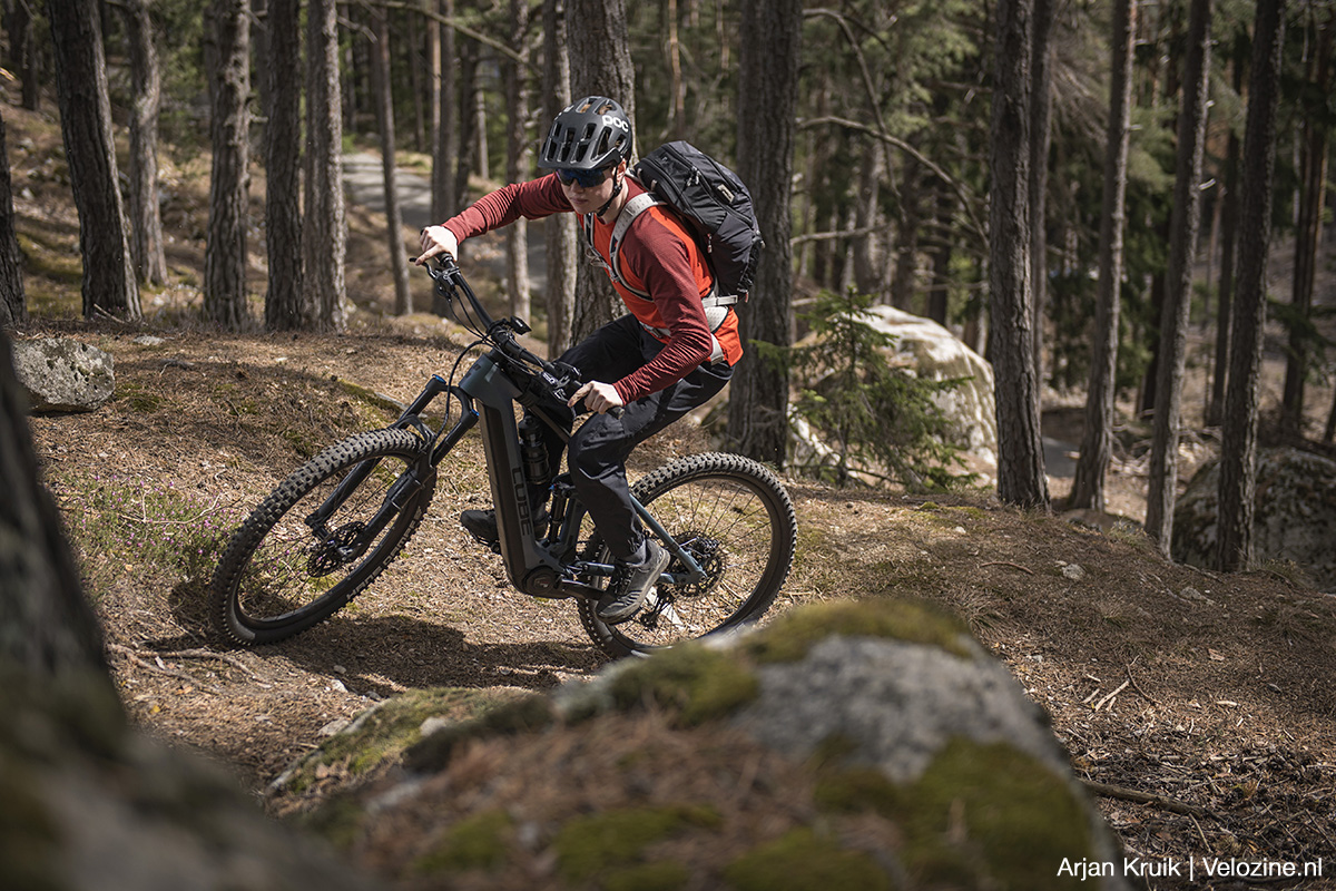 Dat is een keuze die ik begrijp, want hoe lichter een band onder een e-mountainbike rolt, hoe verder en hoger je komt met één acculading. Maar mijn keuze zou het niet zijn. Wat je namelijk wint aan rolweerstand, verlies je aan grip. En omdat er toch een motortje onderin het frame hangt, zou ik altijd voor meer grip kiezen. En al helemaal omdat er, zoals ik hierboven al schreef, vanwege het ABS tóch al sprake is van een zekere onbalans in het remsysteem. Een relatief griparme achterband maakt dat niet beter.