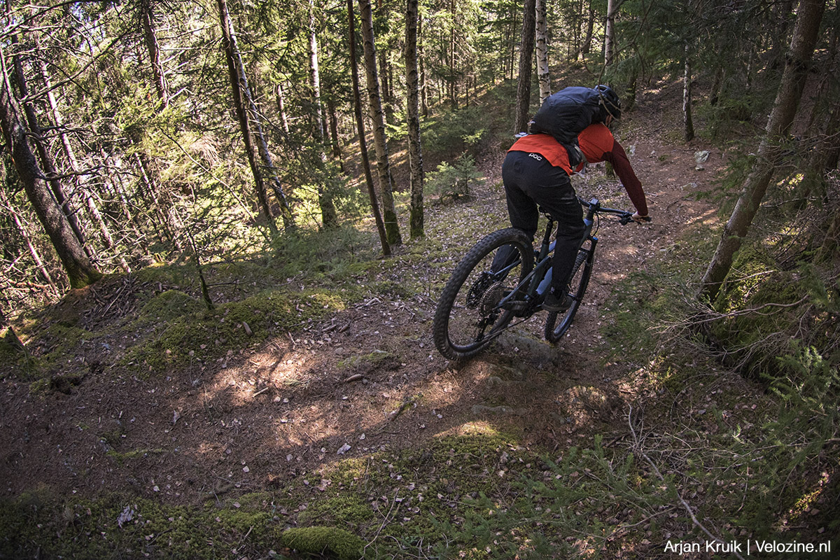 Als je er eenmaal aan gewend bent, geeft het ABS – zoals je kunt lezen in mijn aparte uitleg over het systeem – namelijk zo’n enorme hoeveelheid vertrouwen, dat je je een betere biker voelt dan je eigenlijk bent. Echt, het gemak waarmee lastige secties overmeestert is verbazingwekkend! Met, alweer, de opmerking dat de relatief griparme achterband een storende factor is. Ook in snelle passages voelt de Stereo Hybrid 140 HPC erg zeker aan. De vering slokt kleine en grote brokken probleemloos op, terwijl de geometrie stabiel is zonder log aan te voelen. En dankzij het ABS durf ik later te remmen dan ik op een gewone mountainbike zou doen, waardoor de sensatie van snelheid en dynamiek nog groter is.