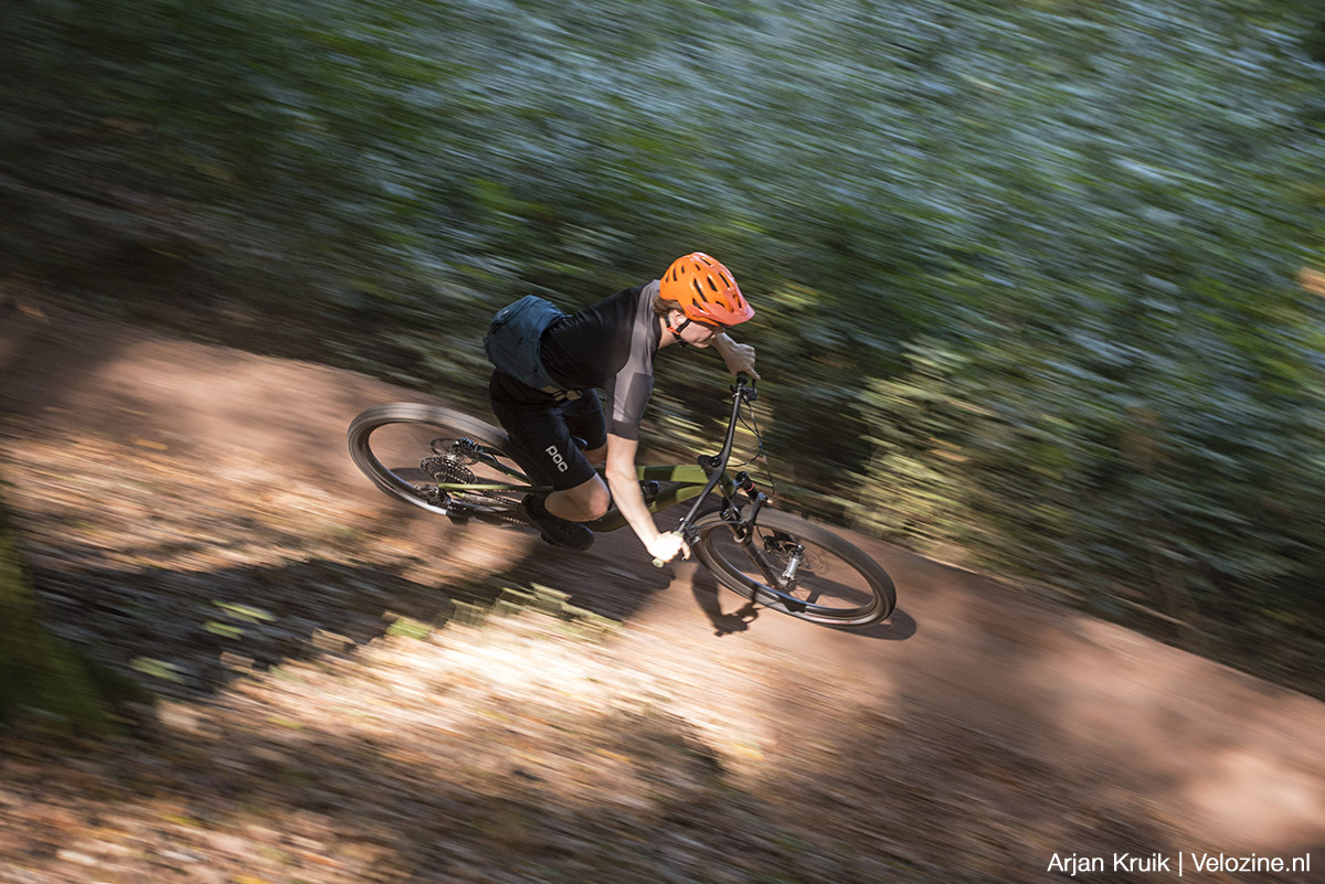 Dan het dalen. Hier laat de Stereo One55 zien wat-ie écht in huis heeft. Wat blijkt: meer veerweg betekent gewoon meer controle en meer snelheid. Voor mij een eye-opener, ik had niet verwacht dat die centimeter extra ten opzichte van een trailbike zóveel uit zou maken. Maar toch is het zo, zo merk ik als ik een lastige trail eerst met de Stereo One55 rijd en vervolgens met een Giant Trance X, die achteraan over 135 en voor over 150 millimeter beschikt. Alhoewel zo’n Trance X toch ook geen tamme bike is – het tegendeel is eerder waar – moet ik in sleutelsecties toch echt eerder in de ankers dan met de Stereo One55. Oftewel: de Stereo One55 brengt me sneller en gecontroleerder naar beneden.