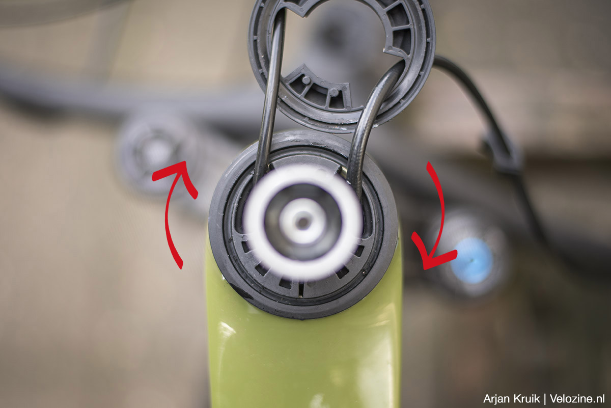 Dat verandert als je stáánd gaat klimmen, de demper begint dan enthousiast op en neer te deinen. Gelukkig is de lowspeed-compressiedemping van de Rockshox Superdeluxe Ultimate goed in te stellen. Draai de knop een of eventueel twee klikjes tegen de klok in en de vering voelt bij staand fietsen al een stuk steviger aan, zónder daarbij tekort te schieten in de afdalingen. Want man-o-man, wat is die Cube Stereo One55 een beest als het pad naar beneden gaat!