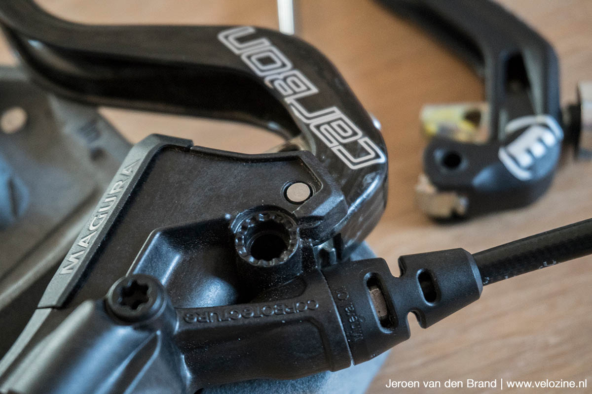 N.b.: de navolgende foto’s tonen de Magura MT8 Pro remgreep nadat de HC Carbon remhendel al was gemonteerd.