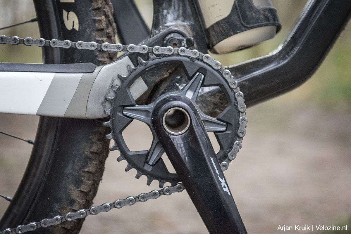 Maar dat niet alleen. Met een klein voorblad zit de ketting gemiddeld genomen ook veel meer rechts op de cassette. Oftewel: op de kleinste, meest slijtgevoelige kransjes. Al helemaal bij een volbloed bosbeuker als Dik, voor wie het begrip ‘rustig toeren’ onbekend is. Als Dik net als Lars met een 34-tands voorblad had gereden, of zelfs een 36er zoals Maurice met z’n 2×12-transmissie, dan hadden er in de aandrijflijn van Dik ongetwijfeld meer kilometers gezeten.
