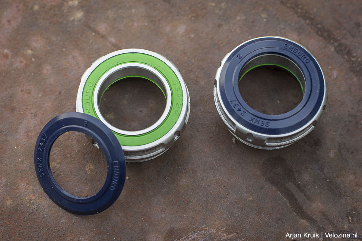 Enduro bracht deze lagers eind 2023 op de markt. Ik had toen de gelegenheid de BSA 24-uitvoering van deze lagers op mijn gravelbike te schroeven. Dat is de geschroefde uitvoering voor 24-millimeter-trapassen. Sindsdien heb ik er niets aan gedaan, behalve zoveel mogelijk fietsen. Dat is minder makkelijk dan het lijkt, aangezien we als testrijders van Velozine op veel verschillende fietsen rijden. Het valt daardoor soms niet mee om op één fiets genoeg kilometers te rijden voor een relevante duurtest. Ik ben daarom niet ontevreden met de kleine 3.500 kilometer die uiteindelijk deze maand op de teller van mijn ouwe trouwe aluminium Conway GRV stond.