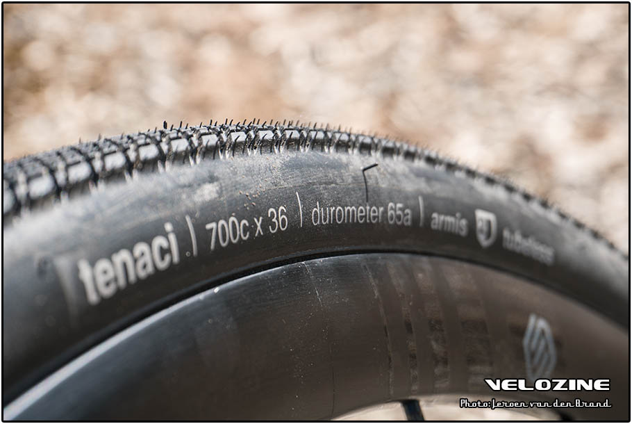 Millimeter-geneuzel terzijde geschoven; zelfs met 34 mm breedte, beviel de ’36’ Tenaci me prima. Het is een band die prima thuis is bij de ritten waar je veel verharde ondergrond met grind- en zandpaden combineert en waarbij je graag de snelheid er in houdt. Ze zijn volumineus genoeg om serieus comfort te kúnnen geven bij lage drukken, zónder dat je daarbij meteen op de velg zit bij de eerste de beste boomstronk. Bovendien rollen ze echt licht en hebben voldoende marge om bij net wat losser spul dan een gemiddeld schelpen- of gravelpad je nog altijd met vertrouwen de snelheid er in te houden.