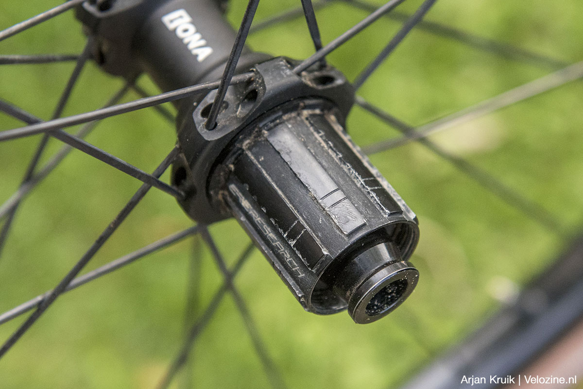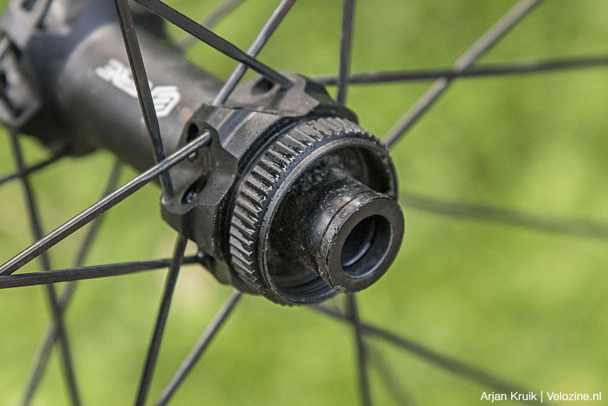 Eerst even wat informatie over de wielen zelf. Allereerst de prijs: die is met nog geen duizend euro zeer aantrekkelijk. Met name omdat er nergens bezuinigd lijkt te zijn. De set, die op op mijn weegschaal 1.554 gram doet, ziet er rondom hoogwaardig uit. De carbon velg is netjes afgewerkt en wordt af fabriek geleverd met tubeless-ventielen en velglint. De spaken en spaaknippels zijn van het Belgische Sapim, de naven komen uit eigen huis. Ze draaien op gesloten industrielagers, de vrijloop werkt met twee getande ringen met 36 aangrijppunten. Mocht je dat te weinig vinden: Ere kan ook ringen leveren met 54 aangrijppunten. De testwielen hebben een Shimano HG-body, maar Ere levert ze desgewenst ook met Shimano Microspline en Sram XDR.