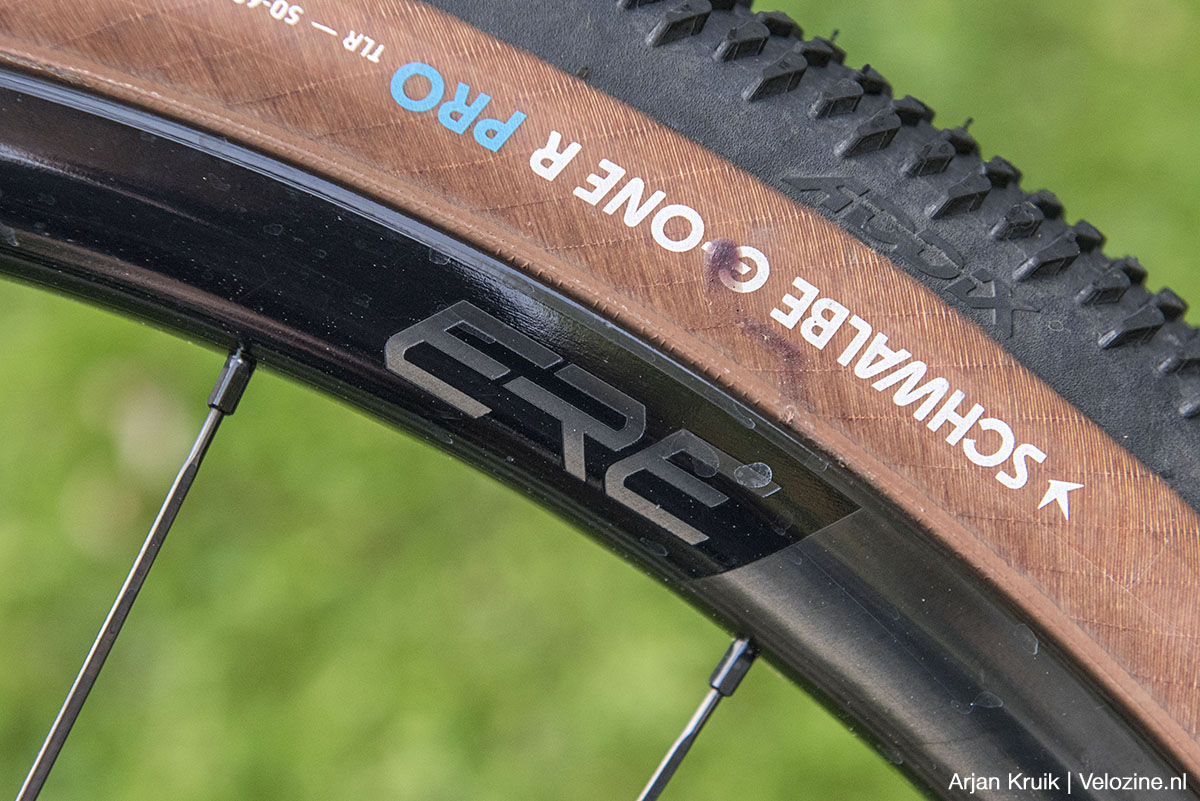 Met tubeless heb ik een haat-liefdeverhouding. Als het omleggen en op druk brengen probleemloos verloopt is tubeless top. Maar lukt dat niet, dan krijg ik er de zenuwen van. Te ruime passing, te krappe passing, tot mijn soms grote frustratie ik zie het allemaal nog steeds langskomen. Bij de Ere Tenaci GT25 in combinatie met de hierboven genoemde G-One R en G-One RS van Schwalbe speelt dat gelukkig niet. Beide banden heb ik zonder al teveel moeite omgelegd en met een vloerpomp op druk gebracht.