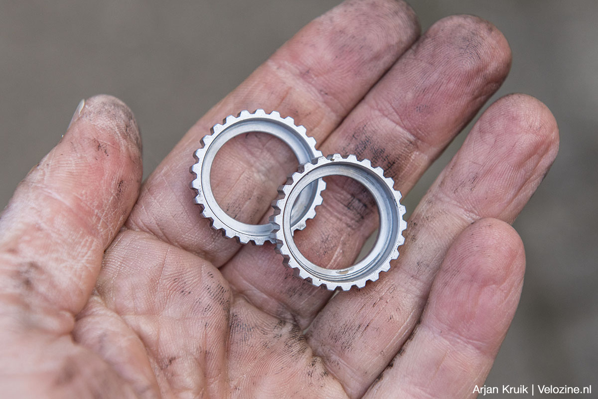Niet dat die snelle tijden volledig te danken zijn aan de wielen. Ook en waarschijnlijk zelfs voornamelijk komen die op het conto van de vijftig millimeter G-One’s van Schwalbe waarmee ik de Ere-wielen heb getest. Ook weer zoiets: het was mijn vaste overtuiging dat zulke brede gravelbanden nooit sneller kunnen zijn dan de veertig millimeters waarmee ik normaal rij. Maar het tegendeel blijkt waar. En dat geeft maar weer eens duidelijk aan, dat conventies uit de wielrennerij niet een-op-een overgenomen kunnen worden op de gravelbike.