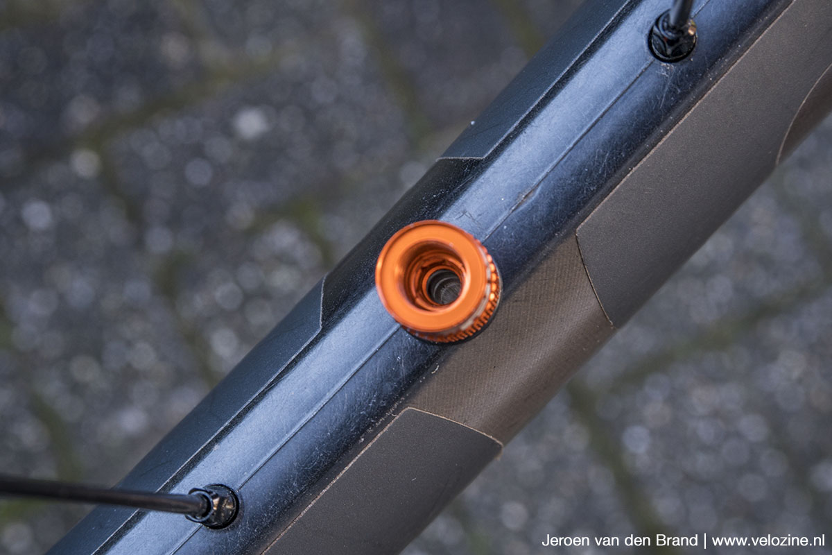 De spuitmond van een flacon E*Thirteen Plasma tubeless-dichtmiddel past inderdaad mooi ín het gat van de Access Port. Dat vullen dus zonder morsen kan zoals E*Thirteen bij de Quick Fill Plasma-tubelessventielen claimt, kan ik dus beamen.
