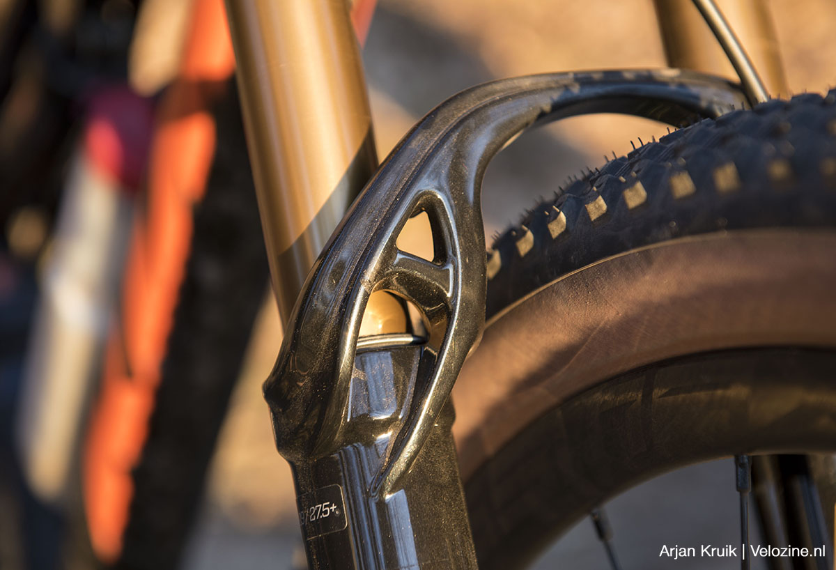 Buitenlandse fietsjournalisten buitelen over elkaar heen van enthousiasme: eindelijk een lichtgewicht vork met lekker veel veerweg en plaats voor 2.5 inch banden, dáár zaten we op te wachten! Maar wij zijn geen buitenland, waar ze echte bergen hebben in plaats van platte polderparkoersen. In een land waar een laffe zandbult als die van Kwintelooijen de titel ‘Ruigste mtb-parkoers van Nederland’ draagt, daar is er natuurlijk een grens aan hoeveel extra veerweg nog zinvol is. Maar goed, we hebben ermee te dealen. Grote merken als Fox hebben namelijk geen boodschap aan de afwijkende wensen van een handjevol mountainbikers in een klein en plat landje aan de Noordzee.
