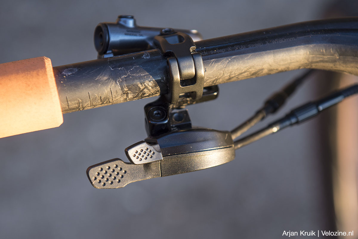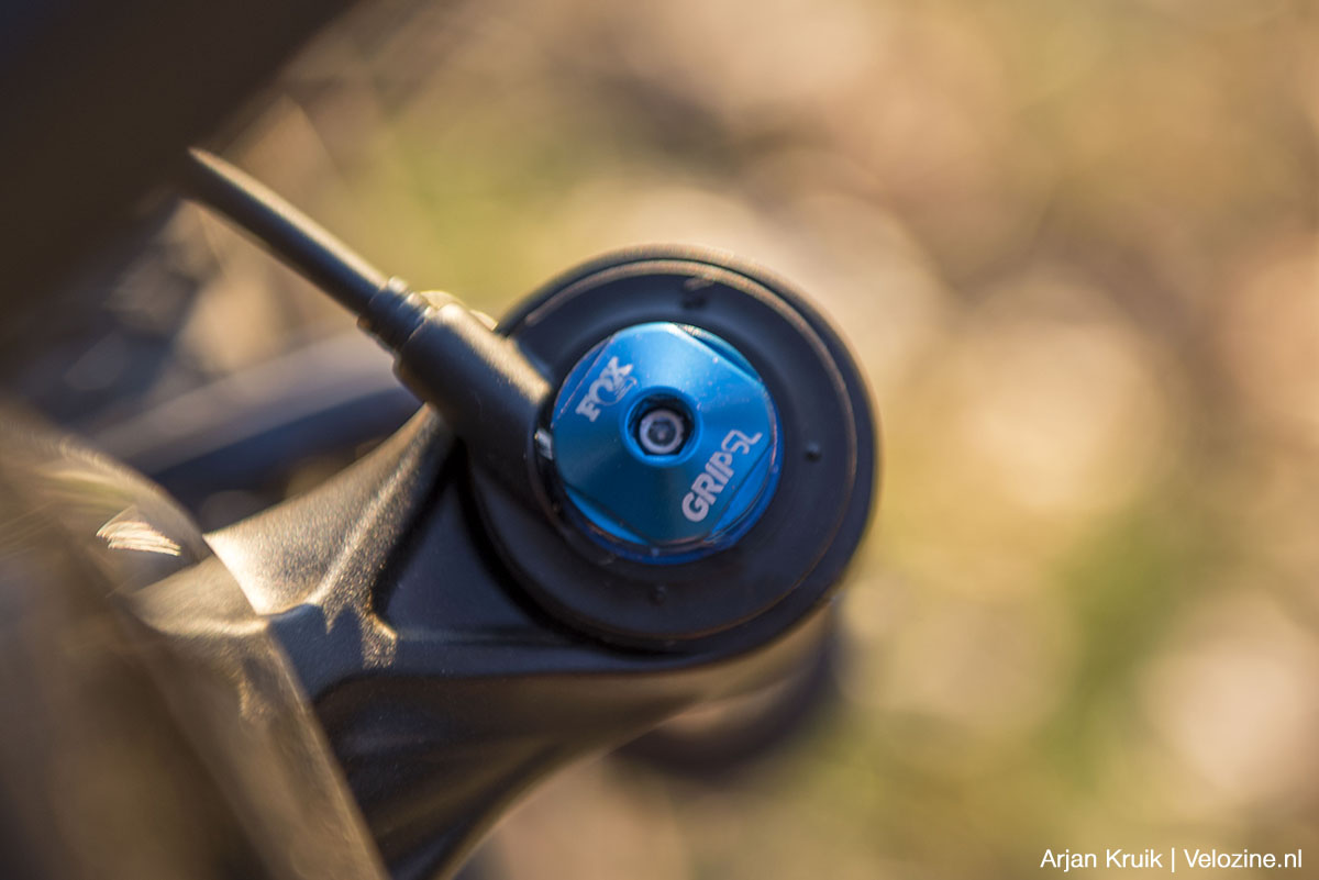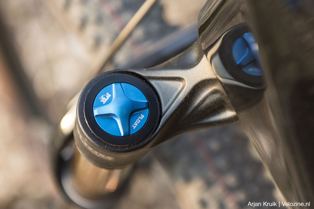 Bij onze testvork met afstandsbediening op het stuur heeft de demping van de ingaande slag, de compressiedemping maar twee standen: open en dicht. Waarbij de blow-off van de dichte stand redelijk snel opengaat als het voorwiel een kei of wortel raakt. Parallel hieraan biedt Fox de 34 SL ook aan met een drietrapsdemping: open, medium en firm. Rijders die geen hendeltjes aan hun stuur willen hebben, kunnen ook kiezen voor een stelknop op de rechter vorkbuis. In dat geval biedt de compressiedemping altijd drie standen.