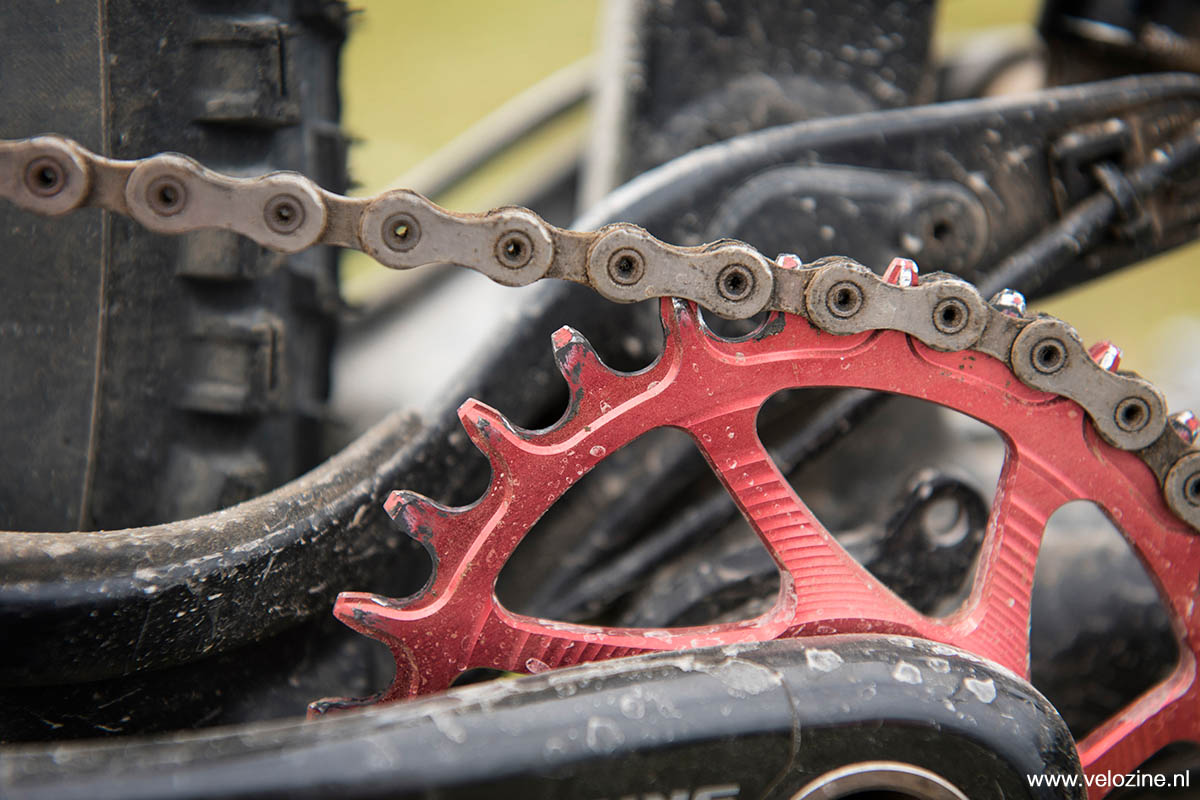 Ook opvallend: het geheel rijdt, in combinatie met een ovaal voorblad van Garbaruk, opvallend stil. En dat ook bij achteruittrappen – de achilleshiel van veel cassettes die niet van Shimano of Sram zijn – blijft de ketting op elk verzet goed liggen. Tot zover missie geslaagd.