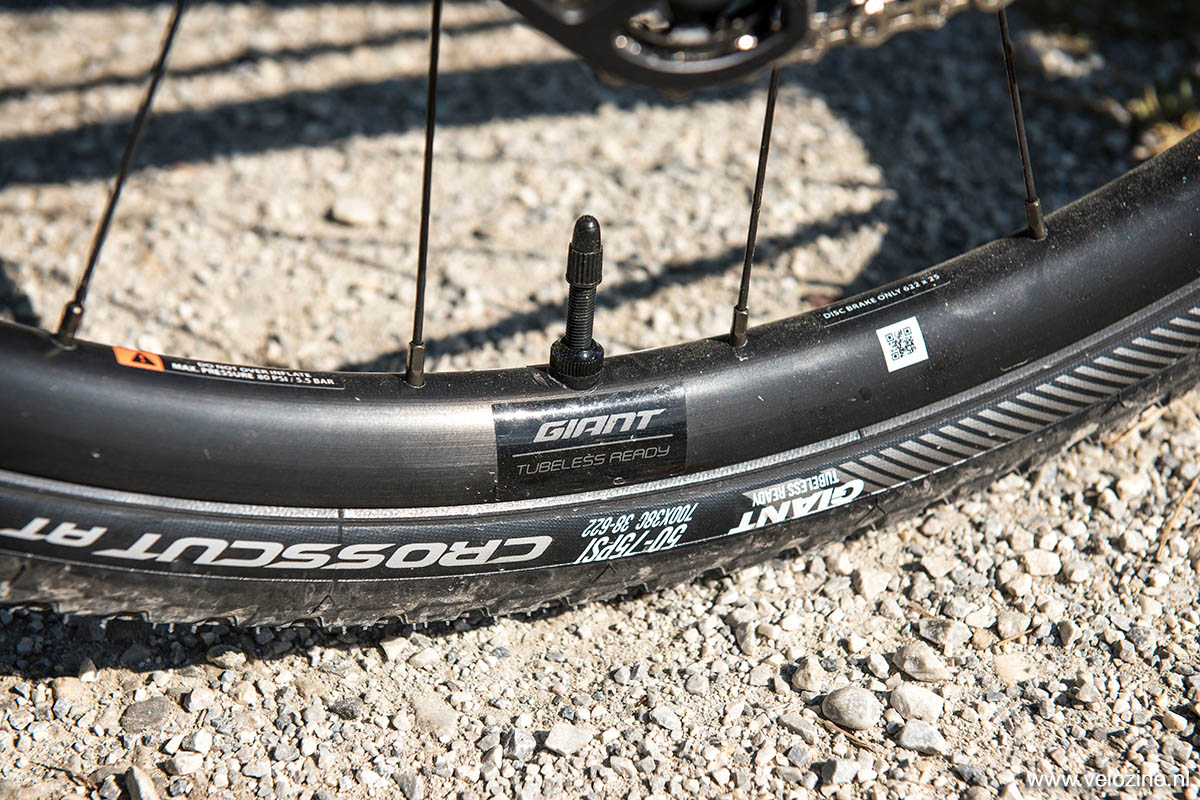 Goed, bij veel van die concurrenten heb je wél volledige Shimano GRX groepsets. Giant wijkt bij de remschijven en de crankset hierin af. Ongetwijfeld mede om tot dat prijspunt te komen. Maar geef ze eens ongelijk; ze doen namelijk niet echt af aan de prestaties en zouden mijn inziens daarom ook niet doorslaggevend moeten zijn bij de aanschaf. Ook het eigenmerk-spul is van goede kwaliteit. De wielsets is af fabriek tubeless en Giant levert daarbij ook gewoon passend rubber bij.