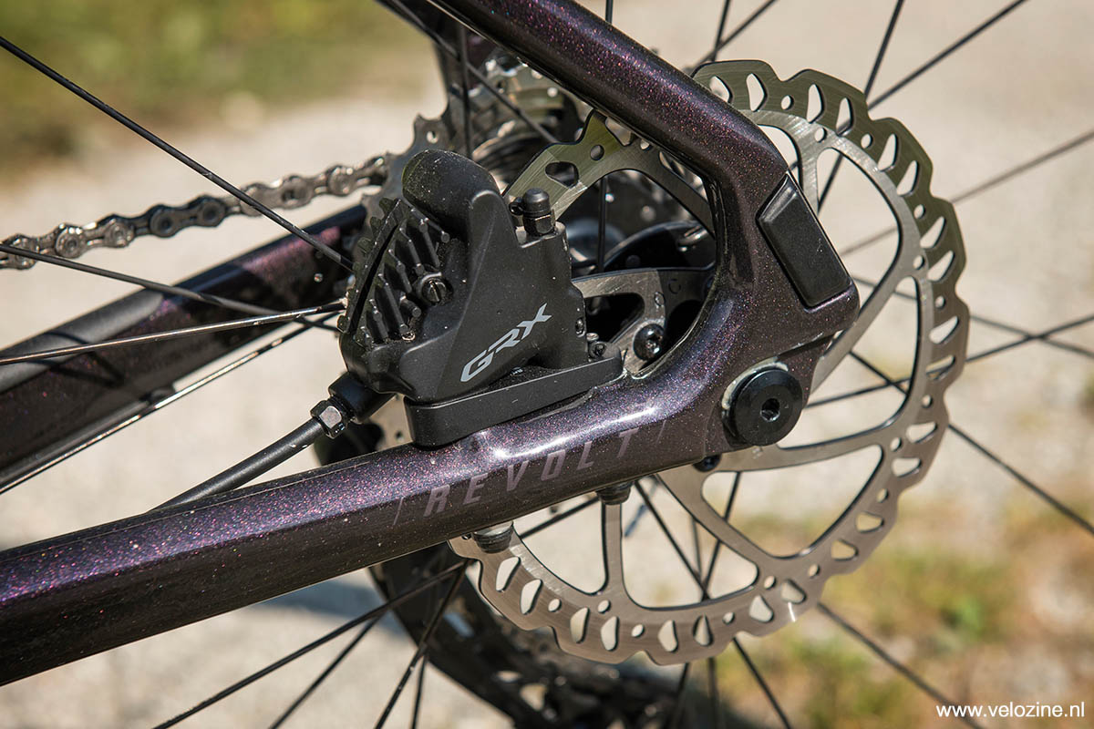 De voorderailleur zit op een losse beugel gemonteerd. Heb je geen voorderailleur nodig, dan kun je die beugel weglaten voor een ‘cleane look’. Dat gezegd hebbende; alle modellen uit de Revolt-serie komen standaard mét een voorderailleur. En het frame is niet los verkrijgbaar.