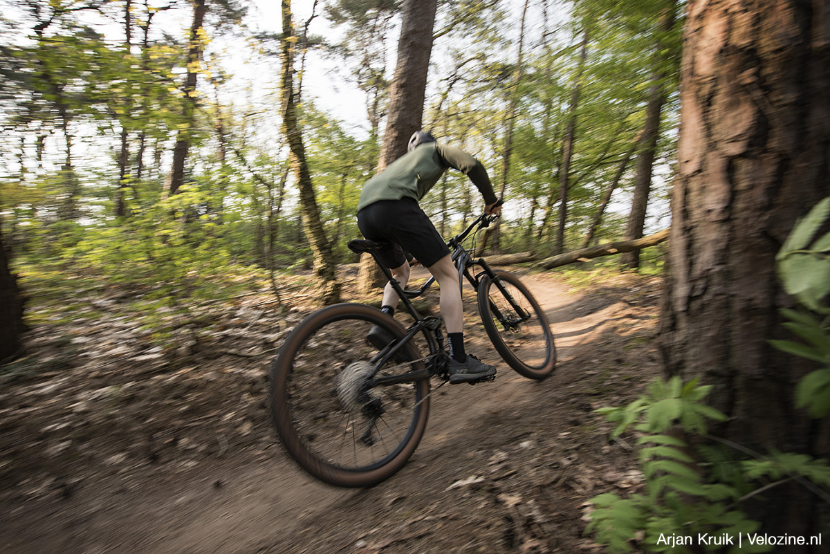 Leuk natuurlijk, die tripjes naar de Alpen. Maar uiteindelijk rijden de meesten van ons hun kilo- en hoogtemeters voornamelijk in Nederland. Dus hoe doet de Trance 2 het daar? Mwah. Als je de fiets houdt zoals je ‘m gekocht hebt, dus met zware wielen en banden, is-ie op onze zandgrondparkoersen niet vooruit te branden. Zeker op routes met veel korte klimmetjes en dito afdalingen is het hoge gewicht echt een crime, met name vanwege de zware roterende massa. En dan heb ik het nog niet eens gehad over de hoge rolweerstand van de dikke rubbers.