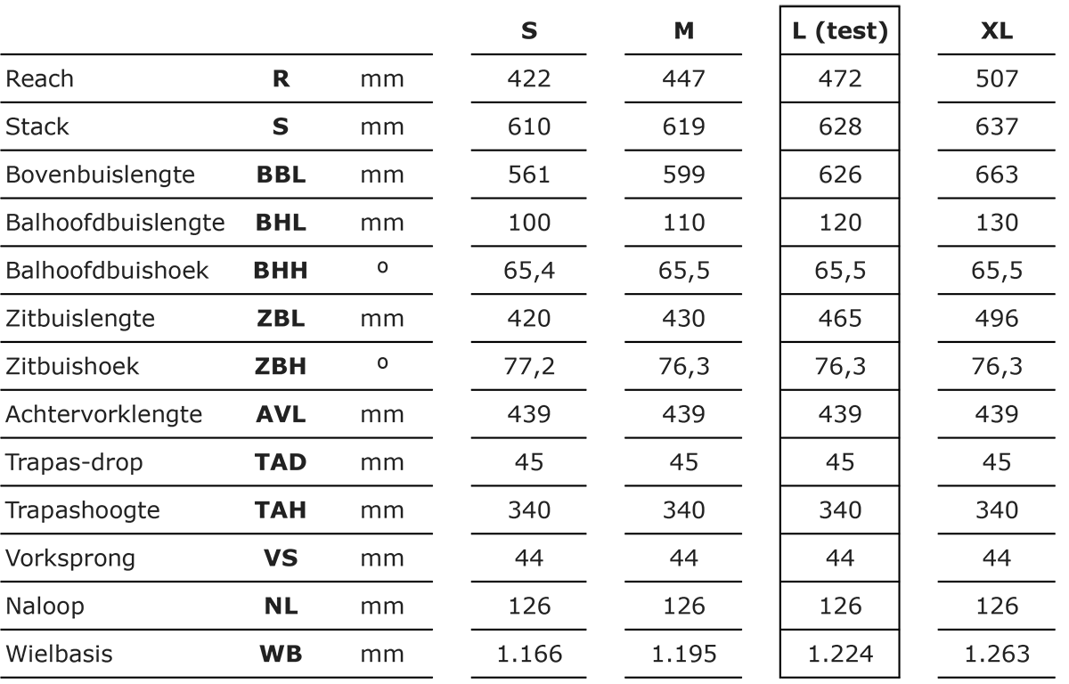 | Gewicht compleet | 15,06 kg (framemaat L) |