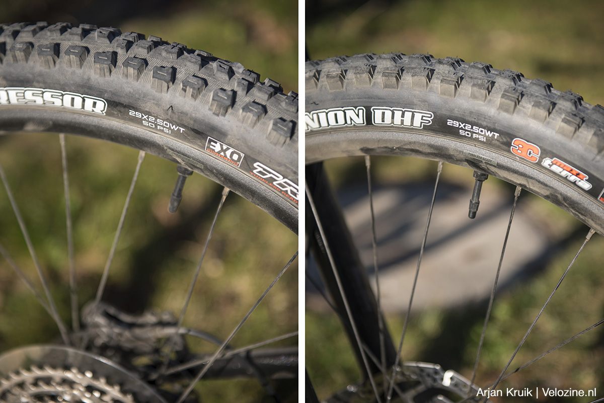 Maar er is natuurlijk meer dan Maestro. Ook de voorvork levert verrassend goede prestaties. Toch kan die de achterkant niet altijd even goed volgen. Is de Marzocchi Z2 op lage snelheid wat stug, als het ruiger wordt en de snelheid omhoog gaat geeft deze Italiaanse vork z’n veerweg juist wat te gretig vrij. Maar gelukkig kun je vertrouwen op de banden. Vooral de Maxxis Minion DHF 2.5 aan de voorkant, met relatief stroeve 3C MaxxTerra-compound, is echt heerlijk. Stuurfoutje aan het eind van een verkeerd ingeschatte bocht? Deze gripvaste band helpt je erdoorheen.