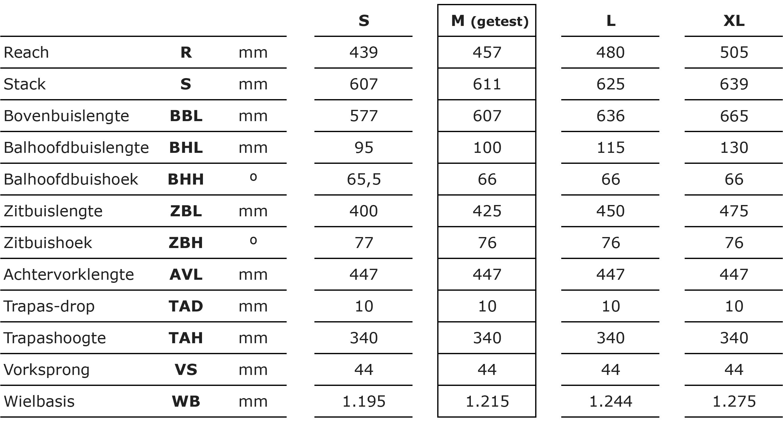| Gewicht compleet | 19,51 kg (framemaat M) |