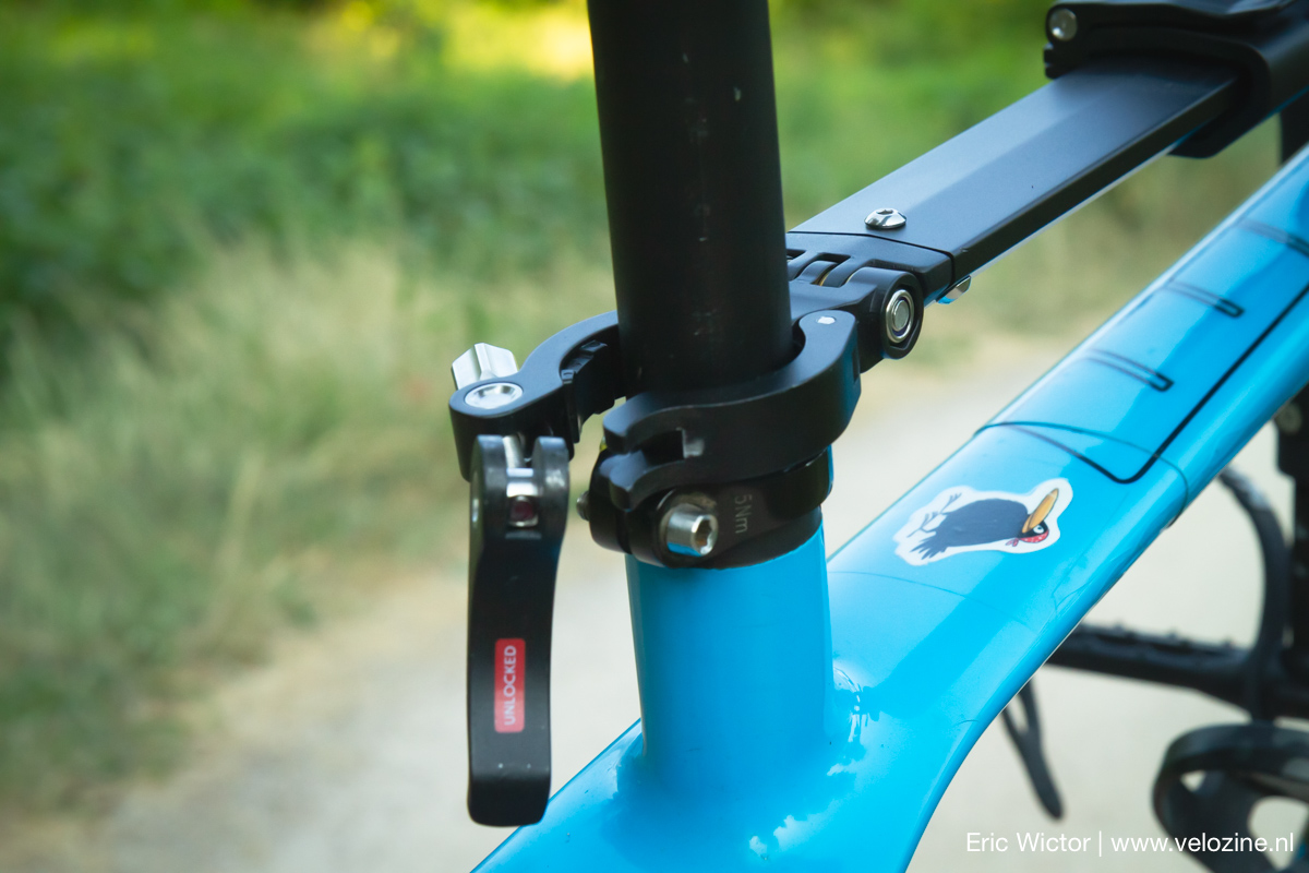 Klemmen om de zadelpen is ook een kwestie van quick-releases los, uitschuiven, de achterste klem zo laag mogelijk plaatsen, en alles weer dichtdraaien. Simpeler kan niet, maar het zit o-zo stevig. Dit geldt ook voor de hoek van het zadel en de voetsteunen. Daarvoor moet je wel twee quick-releases loshalen én een pal omhoog trekken. Maar ook dat is een fluitje van een cent.