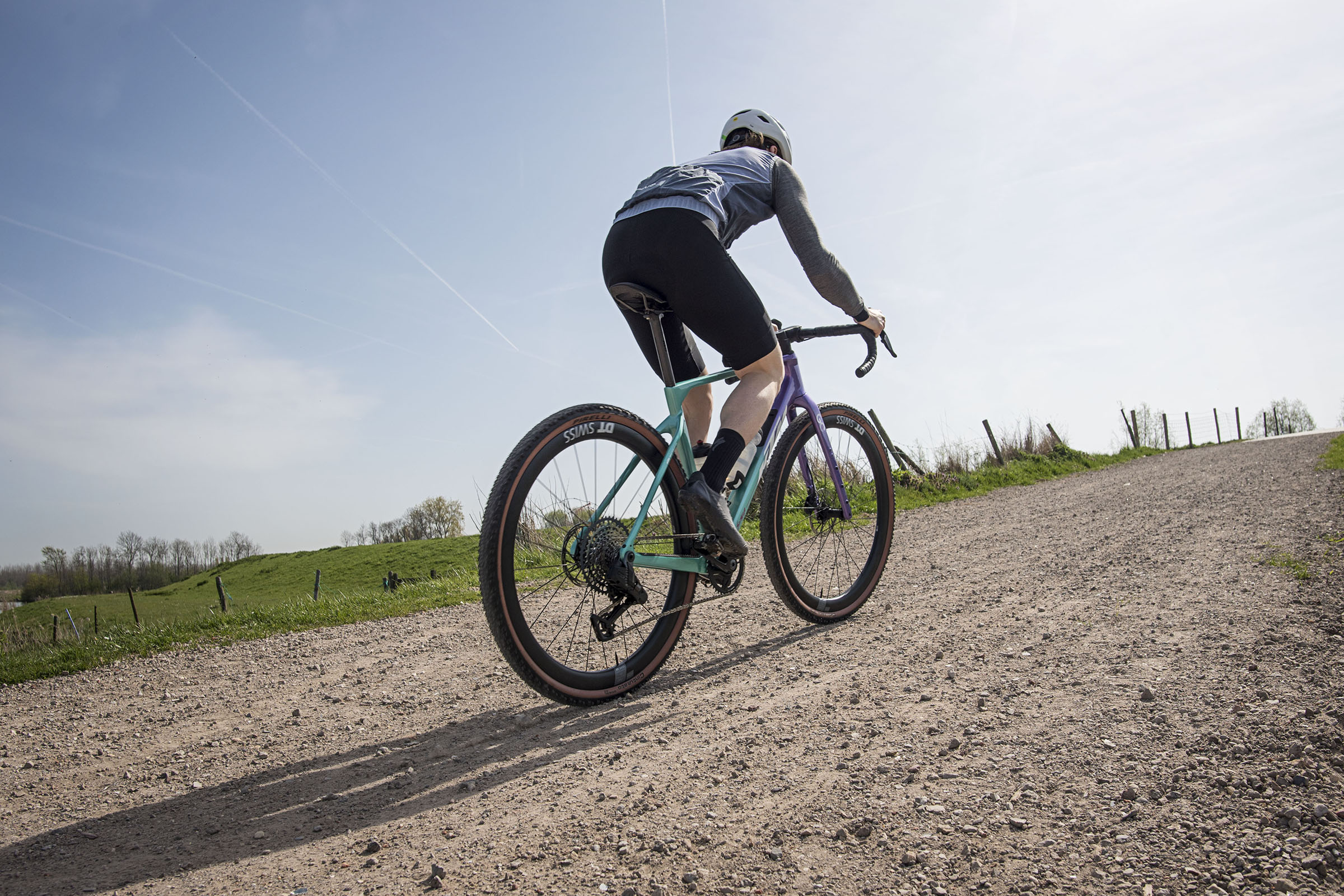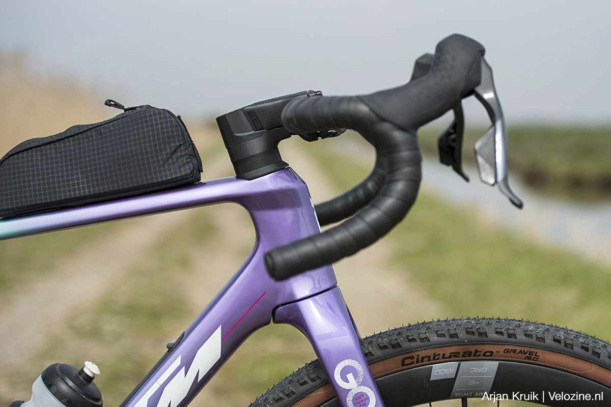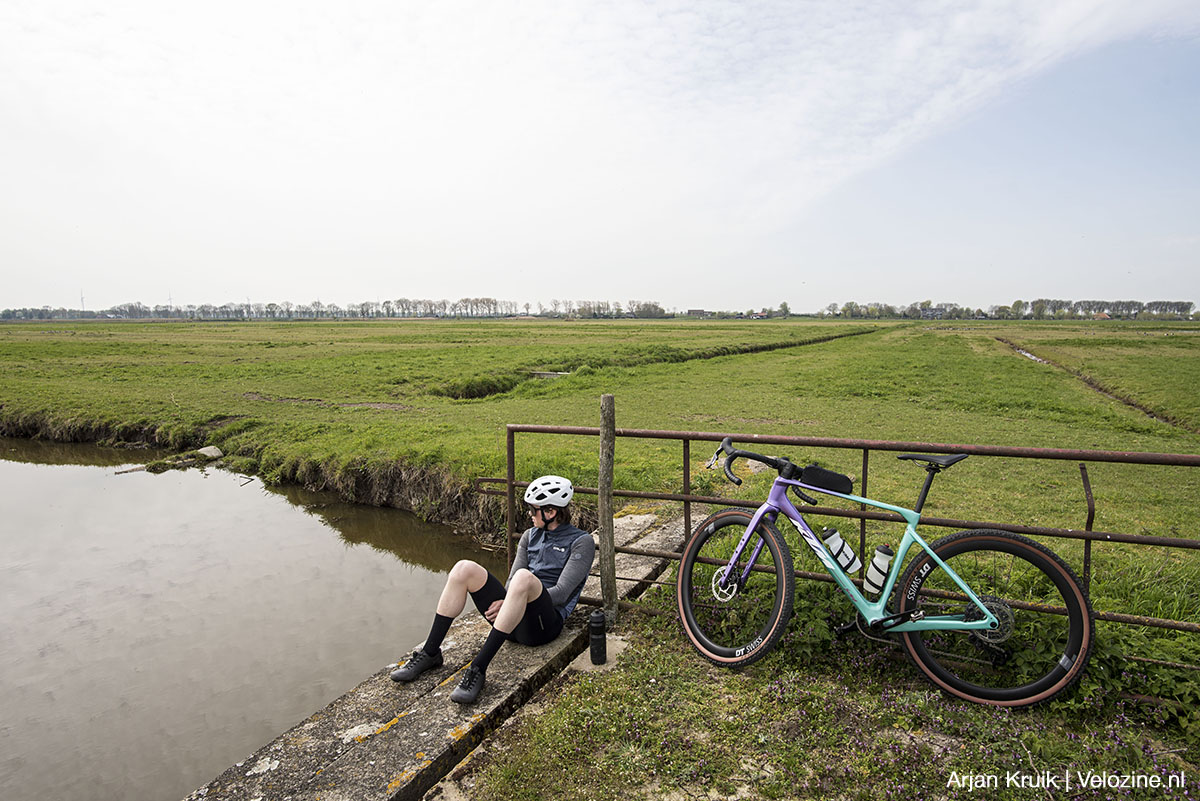Eerst even wennen? Niks daarvan. Met m’n handen op de bovenkant van de remgrepen is de zitpositie me al direct op het lijf geschreven; niet te diep en niet te rechtop, en niet te gestrekt en niet te kort. Zo kan ik lekker om me heen kijken en tegelijkertijd de pedalen efficiënt laten rondgaan. En als er een straffe wind op kop staat, dan is het onderin de beugels goed toeven. De Gravelator voelt licht en levendig aan, maar zeker niet nerveus. Dat nodigt uit tot tempo maken, alhoewel met name voor verharde ondergronden de redelijk grof genopte Pirelli Cinturato’s niet mijn eerste keus zouden zijn.