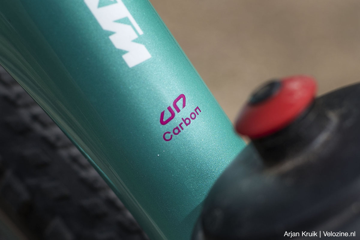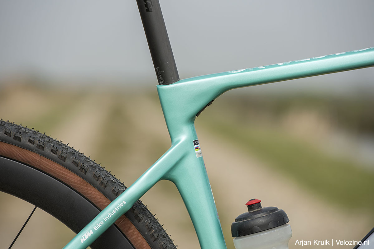 Aan een specifieke comfortconstructie, zoals op bijvoorbeeld de Trek Checkmate (test hier) of de Specialized Diverge STR (test hier), doet KTM niet. Maar dat wil niet zeggen dat comfort bij de makers geen punt van aandacht was. Integendeel: de bandbreedte groeide van 40 naar 45 millimeter en de zadelpen is een exemplaar van carbon, dat vanwege een speciale carbon lay-up enigszins kan meebewegen met schokken die van onderaf komen.
