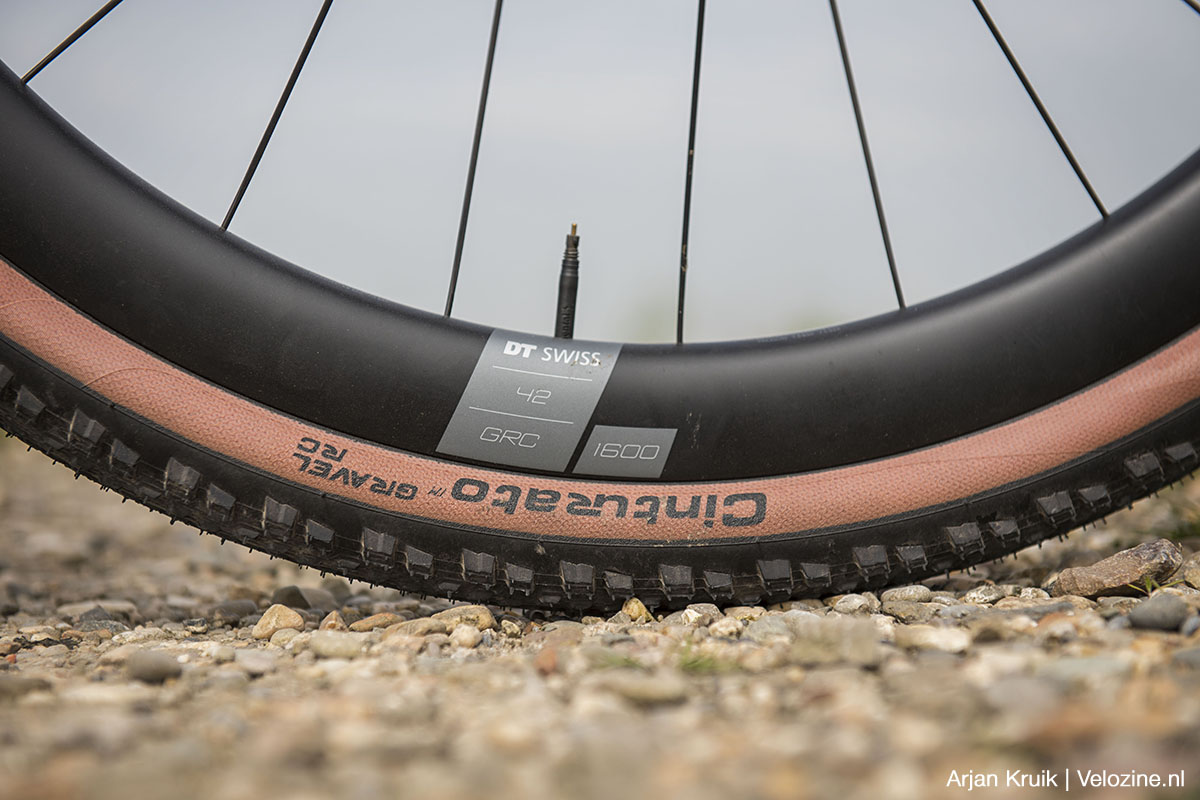 De binnenbreedte van de velgen is 24 millimeter. Dat is breed genoeg om de gemonteerde 45 millimeter brede Cinturato’s van Pirelli mooi te laten staan. Het geheel draait rond DT 350 naven. Die zijn goed voor vele zorgeloze kilometers.