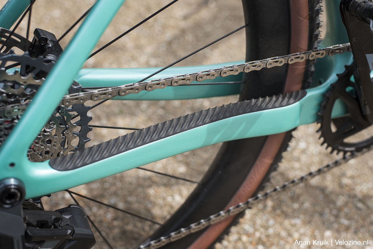 Nog even over dat stuur, een carbon SL-70 XPLR van Zipp: dat is aangenaam comfortabel. Dankzij de korte en ondiepe vorm kun je de verschillende posities soepel afwisselen. In de drops zorgt de subtiele flare voor nét wat extra breedte en daarmee meer controle, zonder dat dit ten koste gaat van de houding bovenop de grepen.
