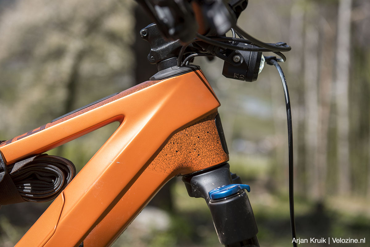 KTM meldt dat de geteste Macina Kapoho over meer anti-squad beschikt dan z’n voorganger. Aangezien ik daar geen ervaring mee heb, kan ik deze claim niet verifiëren. Wat ik wel kan vaststellen is dat de nieuwe Kapoho slechts weinig last van deinen heeft. Alleen op lange beklimmingen over asfalt of fijn grind neem ik de moeite om het klimknopje op de demper om te zetten.