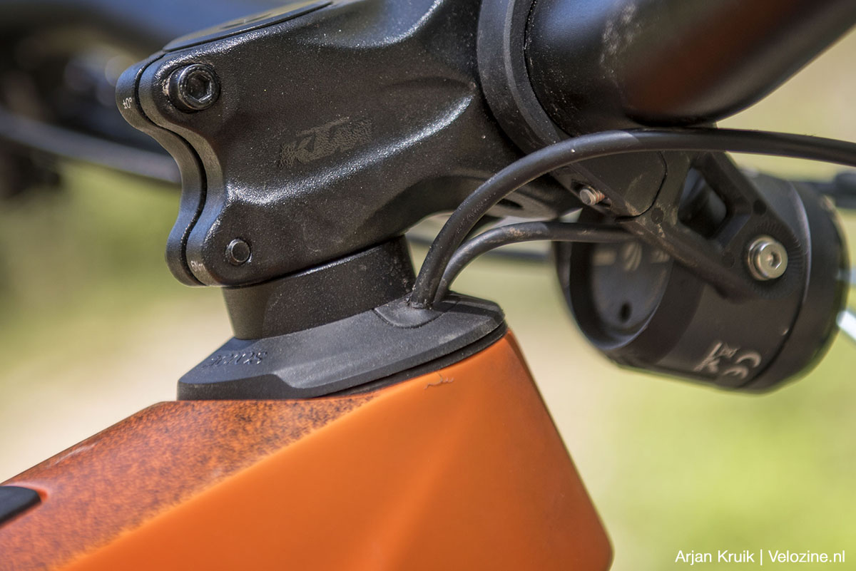 Ondanks dat de trend minder heftig is, worden bikes worden nog steeds langer, luier en lager. En dus ook deze elektrische KTM. Ze volgen daar in het Oostenrijkse Mattighofen, waar KTM z’n hoofdvestiging heeft, de ontwikkelingen nauwlettend. Dat betekent niet dat de geometrie van de Macina Kapoho extreem is, maar wel dat de laatste inzichten zich in de gekozen geometrie weerspiegelen. Tenminste, met een de balhoofdbuis die op 65 graden staat en een zitbuishoek van 77,5 graden kan je dat wel stellen. Aan de andere kant: de waarden voor reach en stack zijn met respectievelijk 471 millimeter en 620 millimeter eerder behoudend. Dat alles bij de maat L van onze testfiets.