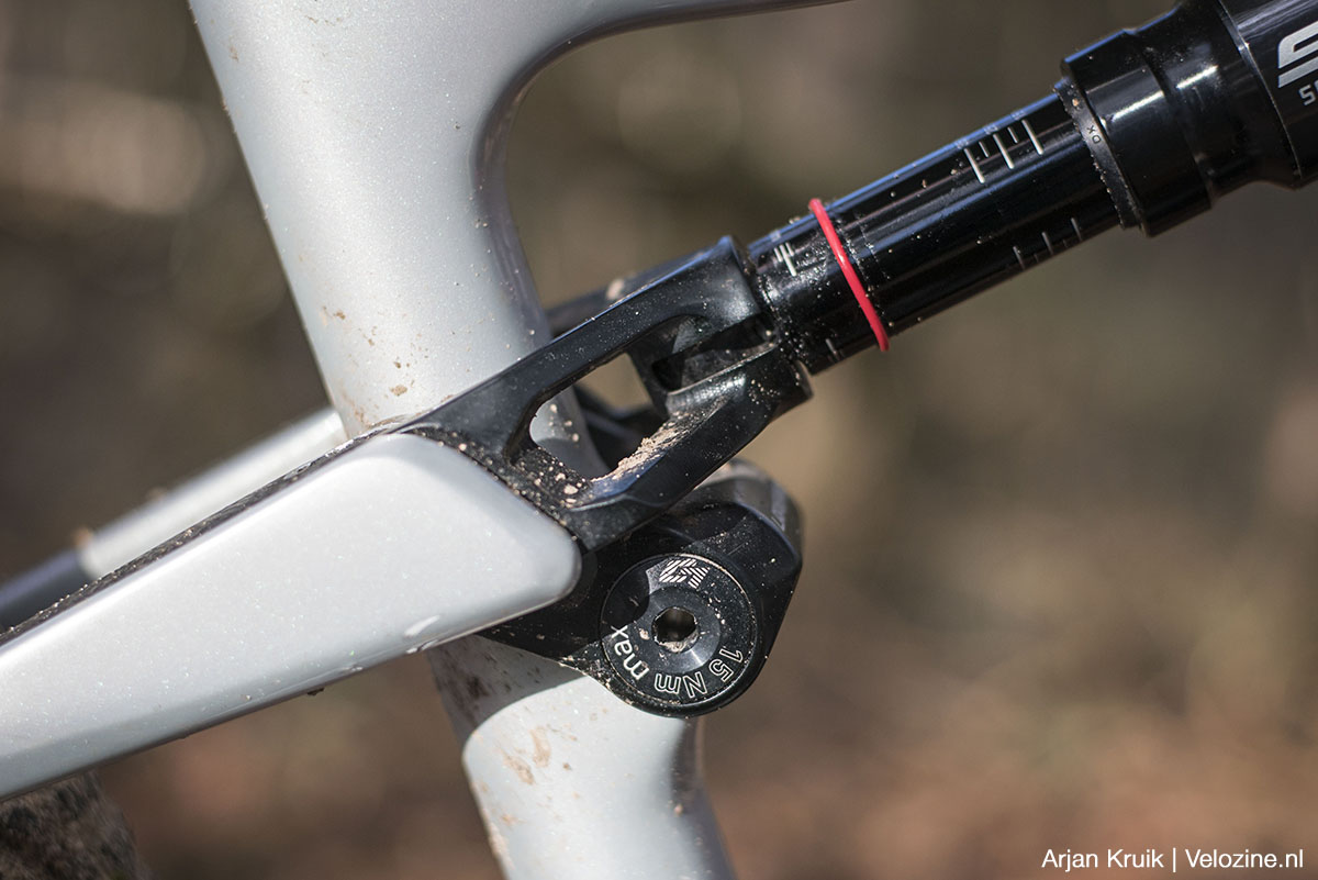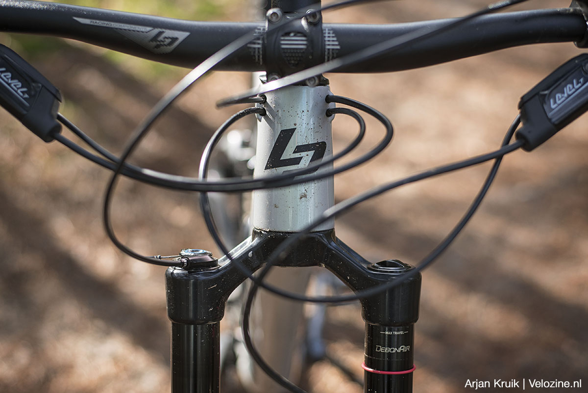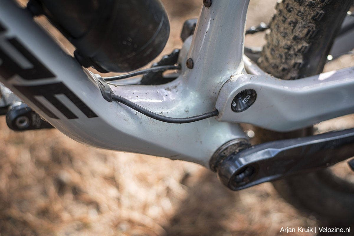 Naast luchtdruk en de demping van de uitgaande slag, de rebound, kun je bij de vork en de demper met behulp van een hendel onder het stuur kiezen tussen de standen ‘open’ en ‘gesloten’. Een tussenliggende klimstand, die we op de Lapierre XR juist zo waardeerden, ontbreekt om de een of andere reden op de XRM. Jammer! De progressiviteit van de veerelementen is in te stellen door aan de binnenkant volumespacers te plaatsen. Standaard komt de demper van de Lapierre XRM in maat L overigens zonder zo’n vulbus. Hetzelfde geldt voor de voorvork. Omdat het onderstel voor mijn gewicht en rijstijl progressief genoeg is, heb ik dat gedurende de test zo gehouden.