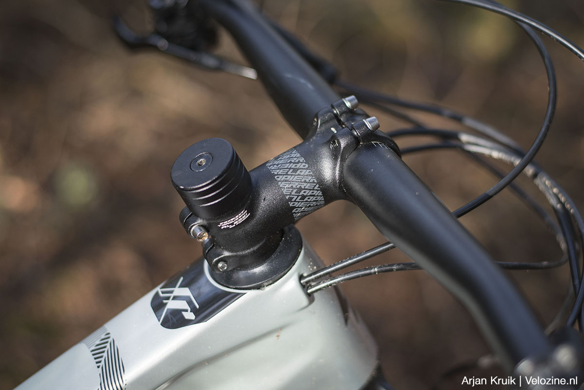 Is met 67 graden de balhoofdbuishoek van de Lapierre XR binnen z’n klasse al aan de luie kant, doet de XRM daar nog een graad bovenop. Vanwege de langere 120 millimeter voorvork komt de balhoofdbuis op 66 graden te staan, een waarde die je eerder op een trailbike verwacht dan op een xc-fully. Die lange voorvork maakt overigens niet alleen de balhoofdbuis een graad vlakker, maar óók de zitbuis. Die gaat op de XRM naar 74 graden. Is een vlakkere balhoofdbuishoek iets dat onder bepaalde omstandigheden een voordeel kan zijn, een vlakkere zitbuishoek is meestal een nadeel, met name als er geklommen moet worden. Een steile zitbuishoek helpt dan om druk te houden op het voorwiel. Om die reden heb ik het zadel van onze Lapierre XRM flink naar voren geschoven, zodat de zitbuishoek effectief weer wat steiler wordt.