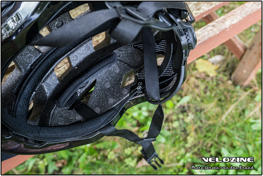 Het kussen voelt qua stof ook comfortabel aan en lijkt veel zweet op te nemen. Opvallend genoeg nog zonder dat er onaangename geuren vanaf komen. Het nadeel van één kussen is dat bij saturatie van het zweet, dit er af en toe uitdruppelt tússen de punten waar het kussen het strakst aanligt op het voorhoofd. Bij mij is dat ongeveer in het midden. Geholpen door de zwaartekracht druppelt het dan af en toe op mijn bril. Nu moet ik zeggen dit slechts drie keer is voorgekomen. En ook alleen tijdens één van de hittegolven van afgelopen zomer (waarbij niet fietsen misschien zelfs de gezondere optie was…). Overigens merk ik daarbij op dat het dankzij het grote aantal ventilatiegaten (22 om precies te zijn) nooit een broeinest werd.