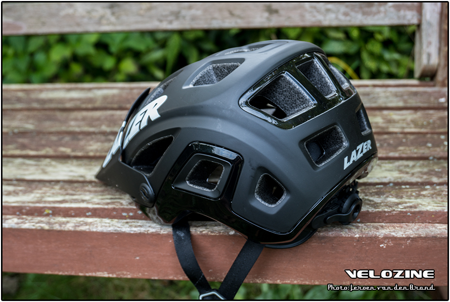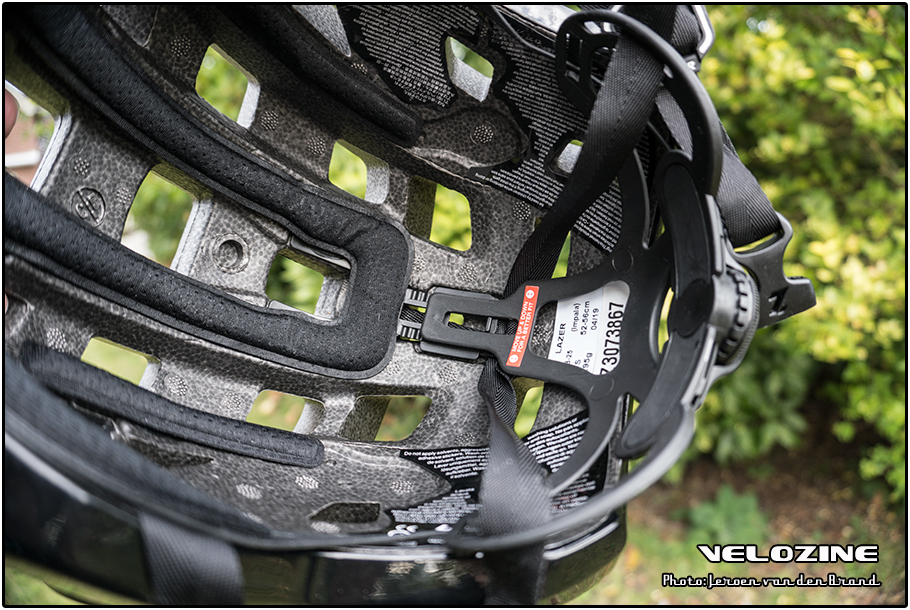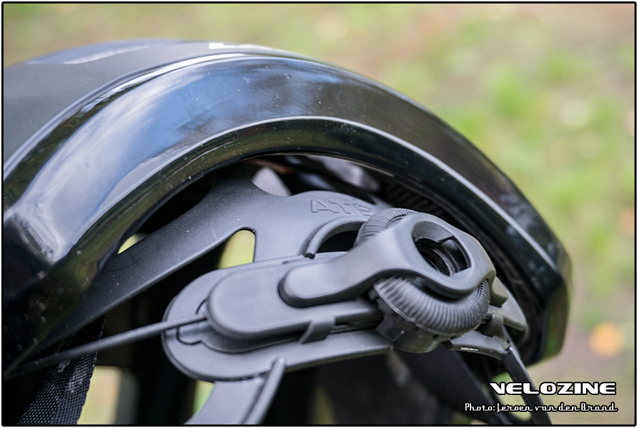 De helm zit mij namelijk als gegoten en ik durf de uitspraak wel aan dat hij bij velen fijn zal zitten, ongeacht de omtreksvorm van van je hoofd. Lazer’s Advanced Turnfit System (ATS), dat met een simpele draaiknop achterop de helm strak trekt rond je hoofd, verdeelt de druk namelijk erg goed. Je hoeft hem bovendien beslist niet snoeihard aan te draaien om de helm stevig te laten zitten. Het kunststof deel van de ATS dat achter op je hoofd rust, is vrij breed, hoog en rond gevormd. Het omsluit een relatief groot deel van de achterzijde van je hoofd, waardoor-ie – zelfs met de ATS niet snoei hard aangespannen – snel stabiel zit.