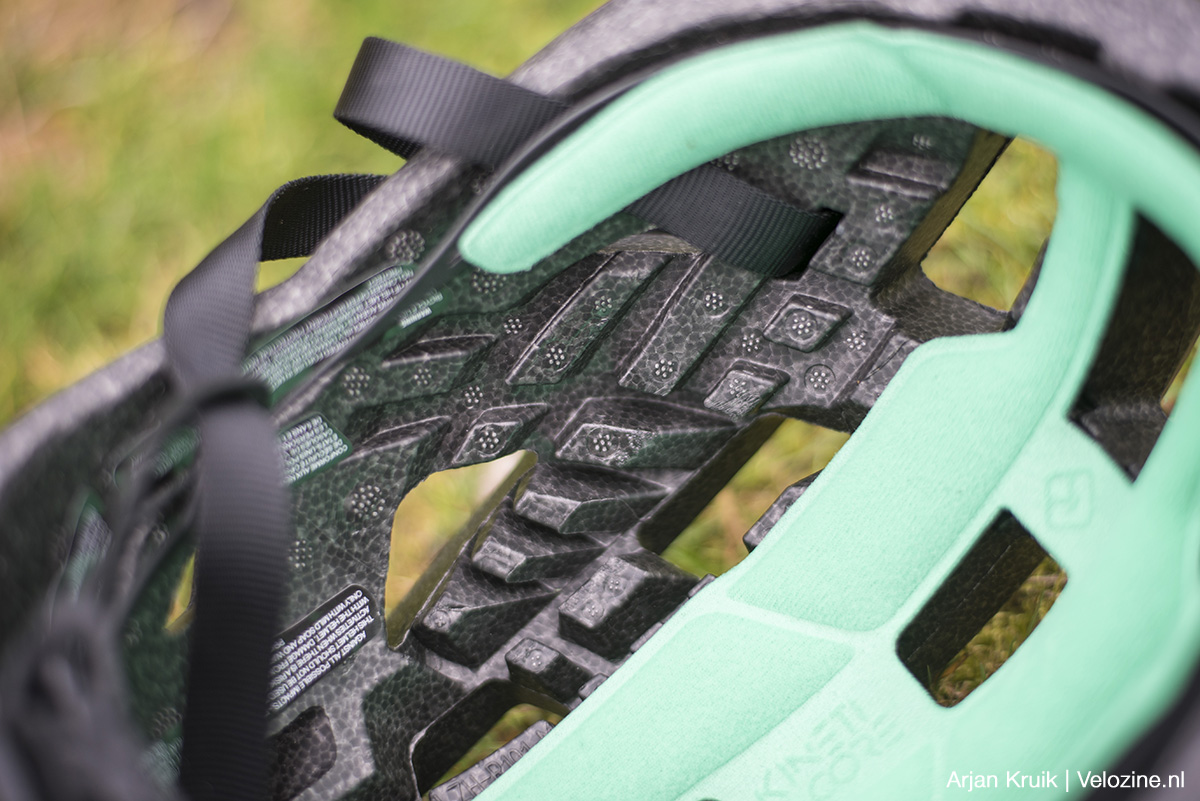 De Lazer Tonic is natuurlijk méér dan alleen het Kineticore-systeem. Deze Belgische helm heeft genoeg toeters en bellen die ‘m ook lós van de toegepaste constructie interessant maken. Maar aangezien Lazer zo’n beetje z’n gehele collectie ophangt aan Kineticore, kan het geen kwaad deze constructie eerst even te belichten. Het valt op dat het Kineticore-systeem volledig in de binnenschaal van de helm is geïntegreerd. Er is dus in tegenstelling tot het veelgebruikte Mips-systeem geen sprake van een losse binnenschaal of voering. De EPS-schaal van de Lazer Tonic Kineticore is aan de binnenzijde voorzien van een grote hoeveelheid blokken en sleuven.