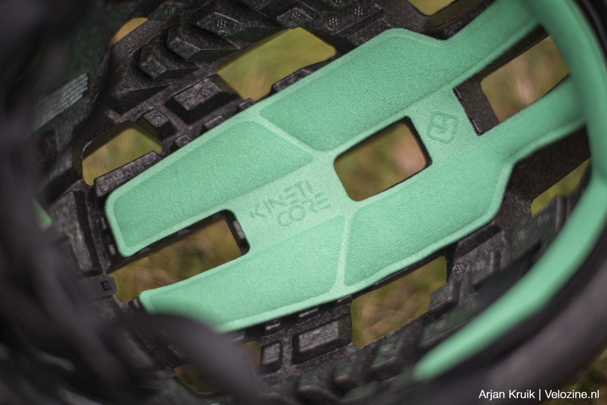 Die blokken en sleuven lijken tamelijk willekeurig aangebracht, maar het tegendeel is waar. Ze zijn met behulp van computermodellering zodanig gepositioneerd, dat de helm bij een impact gericht kan vervormen, om zodoende de valenergie te kunnen absorberen. In andere woorden: de binnenzijde van een Kineticore-helm fungeert als kreukelzone. Lazer claimt op deze manier óók rotatiekrachten te kunnen opvangen.