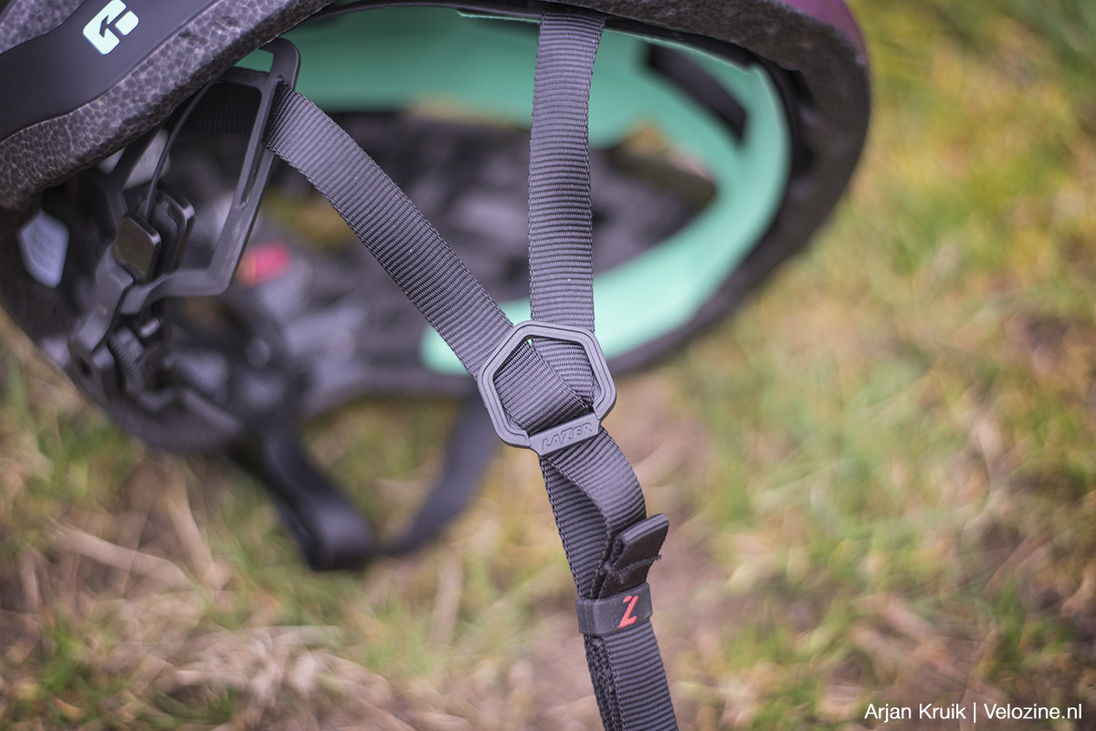 De basis van het fixatiesysteem is een smalle kunststof strip die het gehele hoofd omvat. Hierdoor blijft de helm goed op z’n plaats, zónder dat er drukpunten ontstaan. Althans, bij mijn hoofd. Het bandje is met een draaispanner in de nek losser of vaster te zetten. Het spansysteem is ook in hoogte verstelbaar, maar hier laat Lazer wel steken vallen. De klemkracht van deze hoogteversteller is namelijk zo gering, dat deze regelmatig spontaan verschuift.