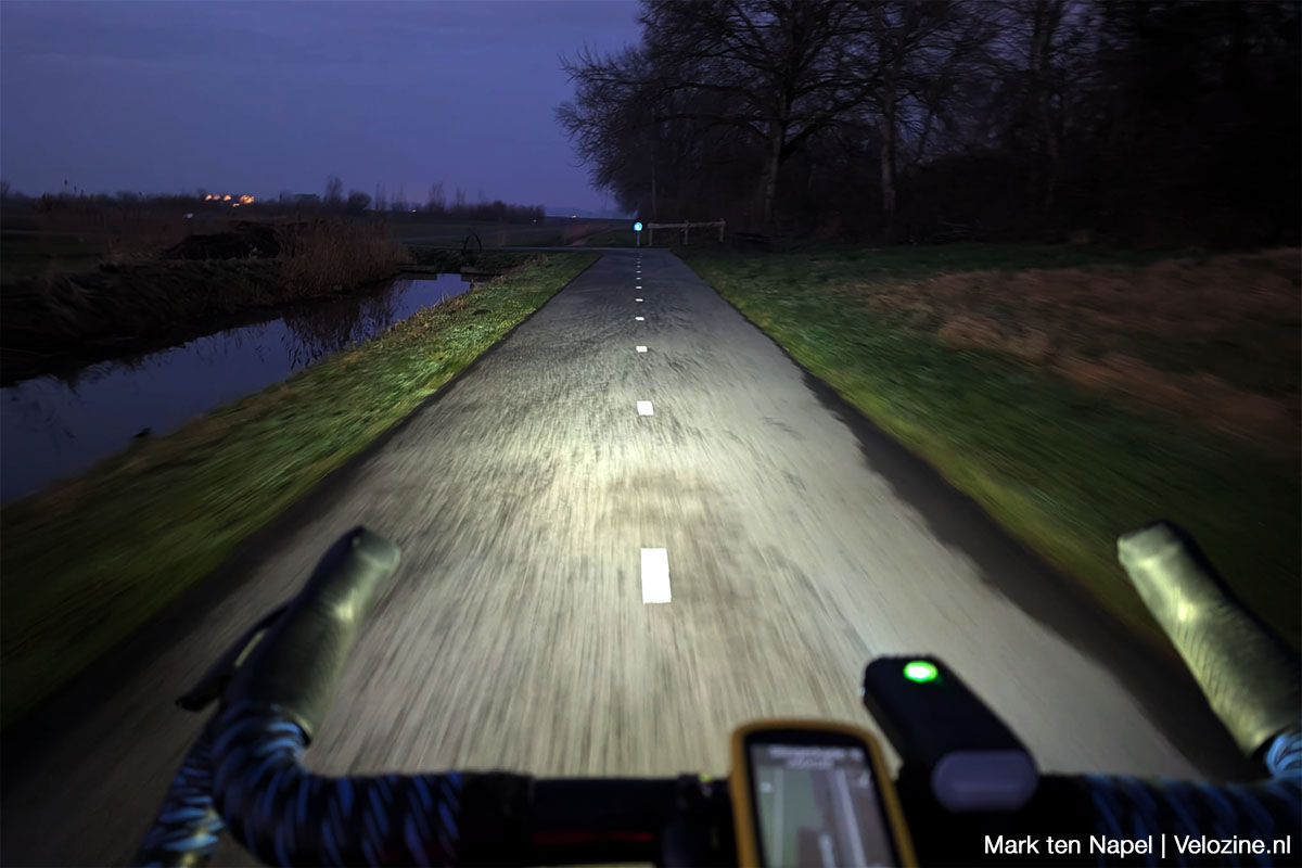Op onverharde paden heb ik beduidend minder last van die harde contrasten. Sterker, en gevoelsmatig tegenstrijdig, zou ik voor echte duurritten in het donker over gravelpaden misschien zelfs wel wat meer lichtopbrengst willen.