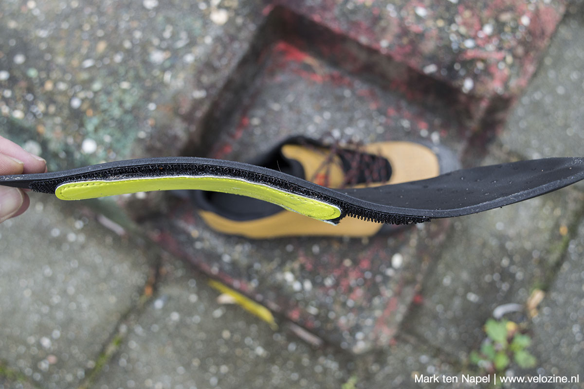 Het grote aanbod aan inlegzolen op de markt volgt een van twee globale gedachtes ten aanzien van het geven van méér steun. Sommige merken gaan uit van het ondersteunen van de hiel. Dit werkt bij loopschoenen erg goed, omdat de loopafwikkeling vanuit de hiel begint. Bij fietssschoenen voor gebruik op flat pedals, waarbij je veel minder met de bal van je voet trapt, levert dit type inlegzool beduidend méér stabiliteit, zo ondervond ook collega Arjan. De andere methode is het meer nauwgezet ondersteunen van de voetboog.