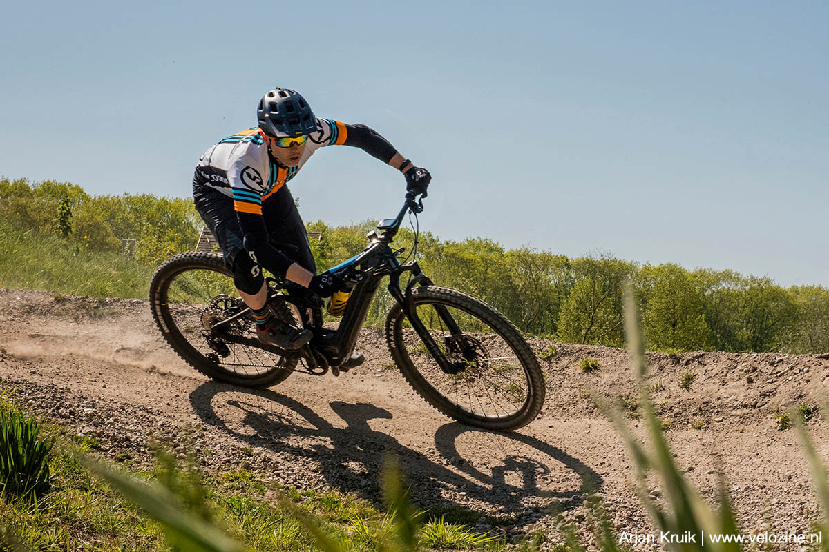 De remgrepen van Magura’s MT5 eStop remgrepen zijn namelijk aan de lange kant. En aangezien ik ze als 1-vinger greep gebruik, zoals je in de foto hierboven kunt zien, heb ik ze vrij ver naar binnen gemonteerd. Om de shifter op de juiste plek te krijgen heb ik dus de linker en rechter klem van de remgrepen ten opzichte van wat Magura voorschrijft omgewisseld. De specifieke I-Spec EV-adapters heb ik uiteraard wel gemonteerd zoals voorgeschreven. Ze hebben namelijk ook een lichte buiging, zodat de shifter en dropperhendel iets naar je toe gedraaid komen te staan.