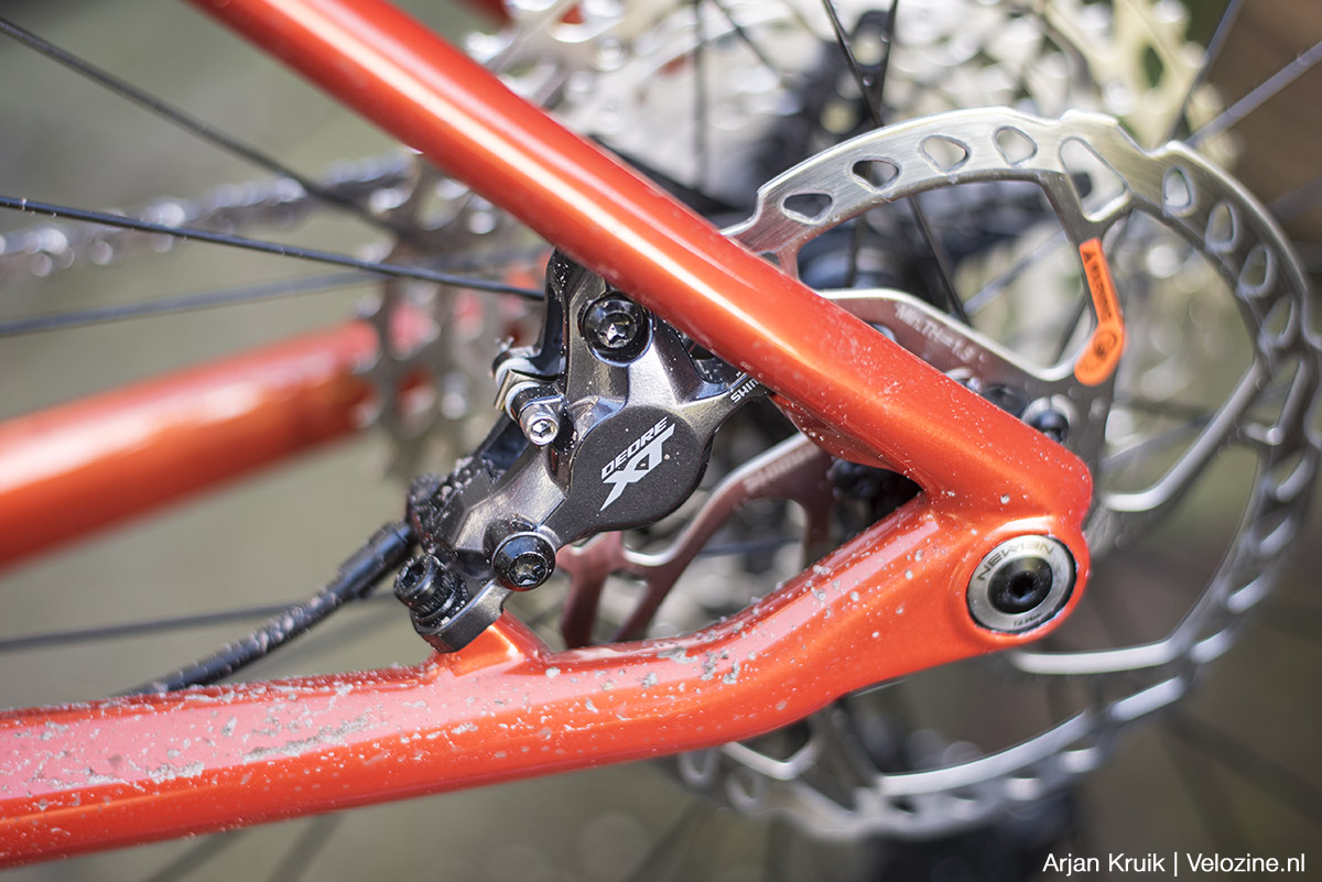 Dankzij de 180 millimeter remschijf aan de voorkant is de vertraging voor Nederlandse parkoersen gelukkig voldoende, maar op buitenlandse trails zou een set stoppers met meer pit en ausdauer geen kwaad kunnen. In die zin wekt de toevoeging van de letters TR in de naam van deze Big Nine verwachtingen die de remmen niet waarmaken.