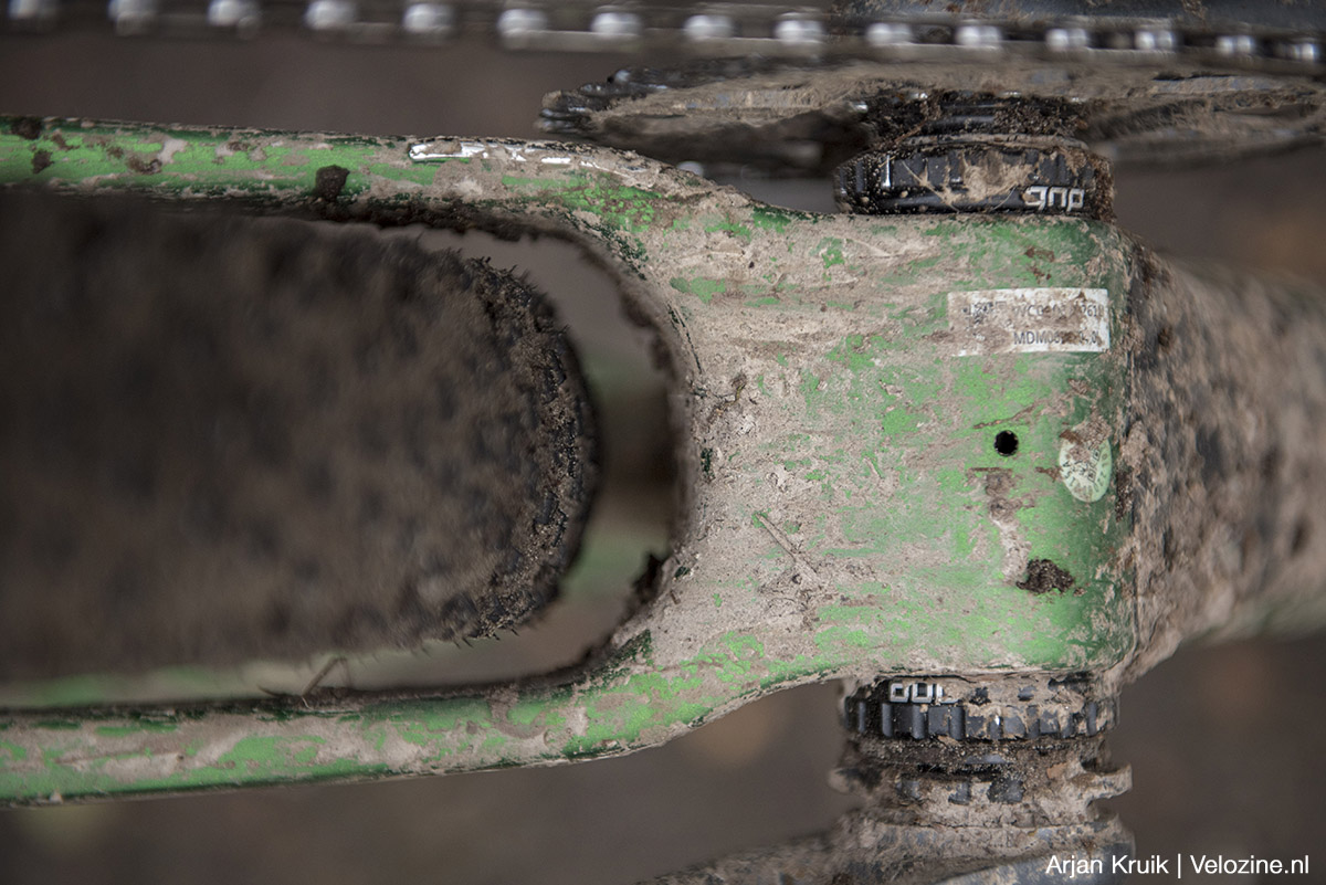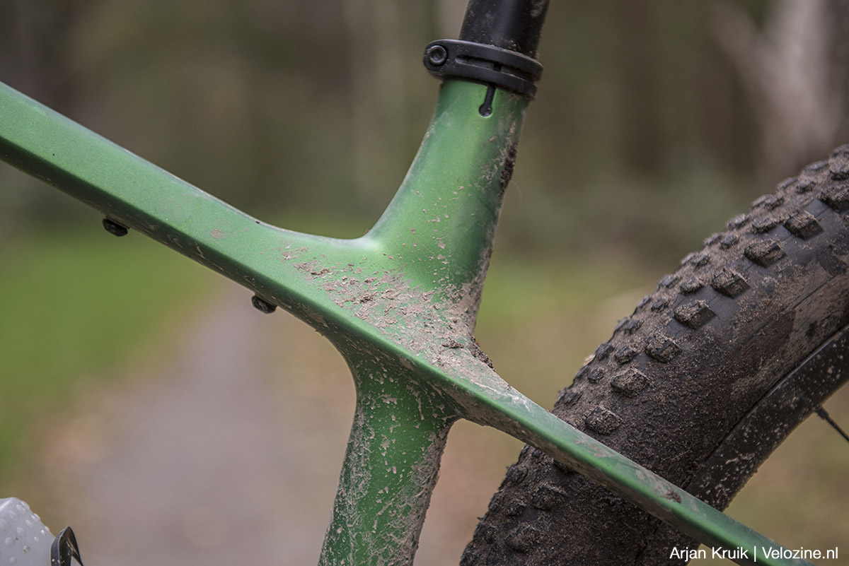 Ook de detaillering klopt, alhoewel uit de wielrennerij overgewaaide trends als kabeldoorvoer via het bovenste balhoofdlager en een achterremklauw met flatmount-montage mijns inziens op mountainbikes niks te zoeken hebben. Maar goed, als ik met fietsmerken en winkeliers spreek hoor ik altijd dat kopers daar volledig voor gaan, dus wie ben ik om er kritiek op te hebben? De klant is koning. Maar de overige details maken me zeker blij. Rondom voldoende beschermers, twee bidonhouderposities op de lange onderbuis, montagenokjes ónder de bovenbuis, ruimte voor brede banden en plek voor een dropper. Kortom, je kunt alle vakjes aanvinken!