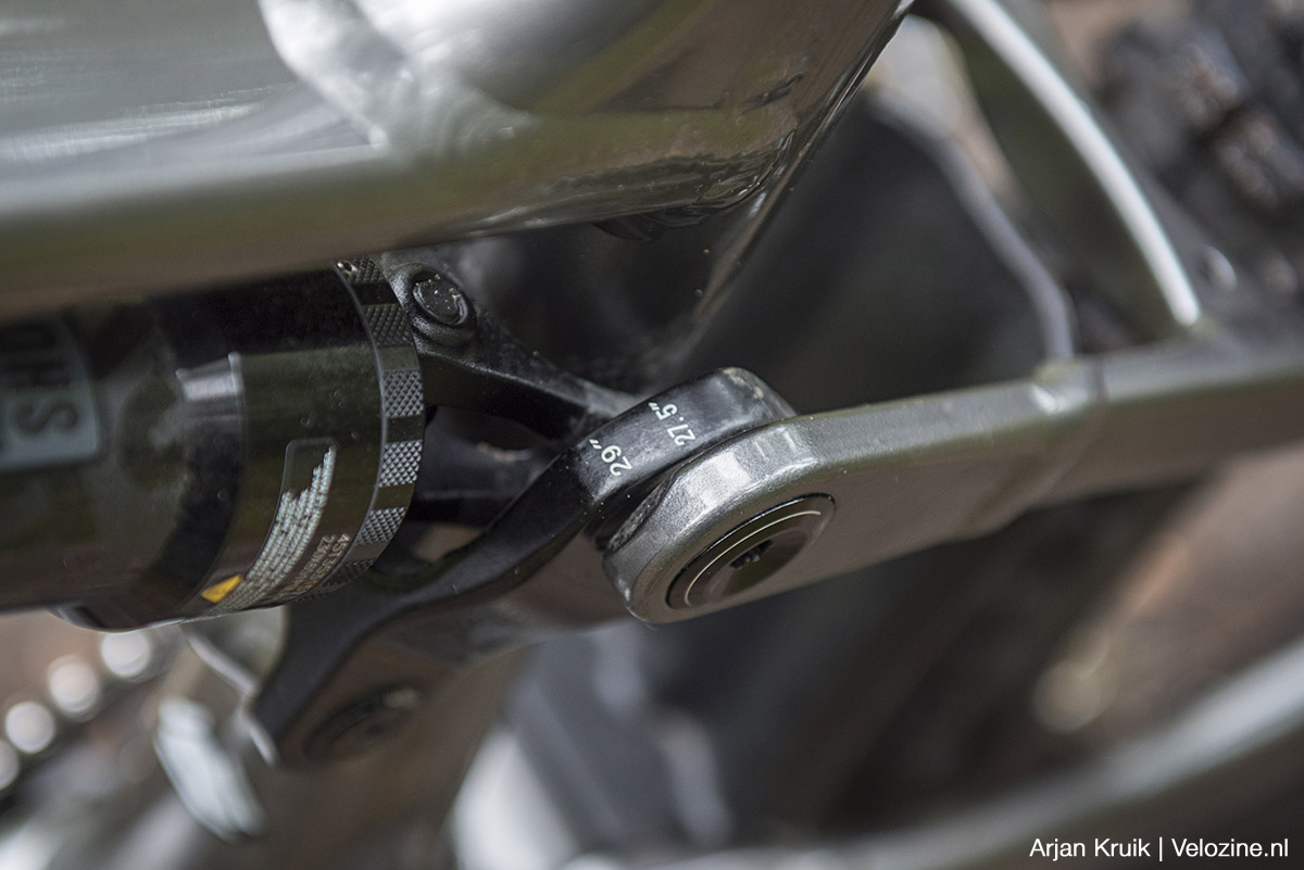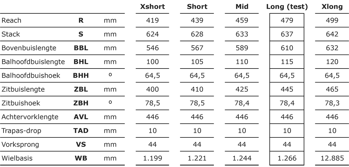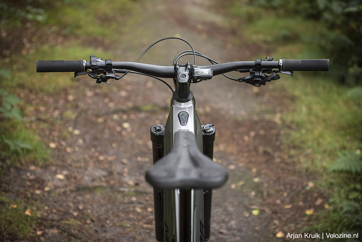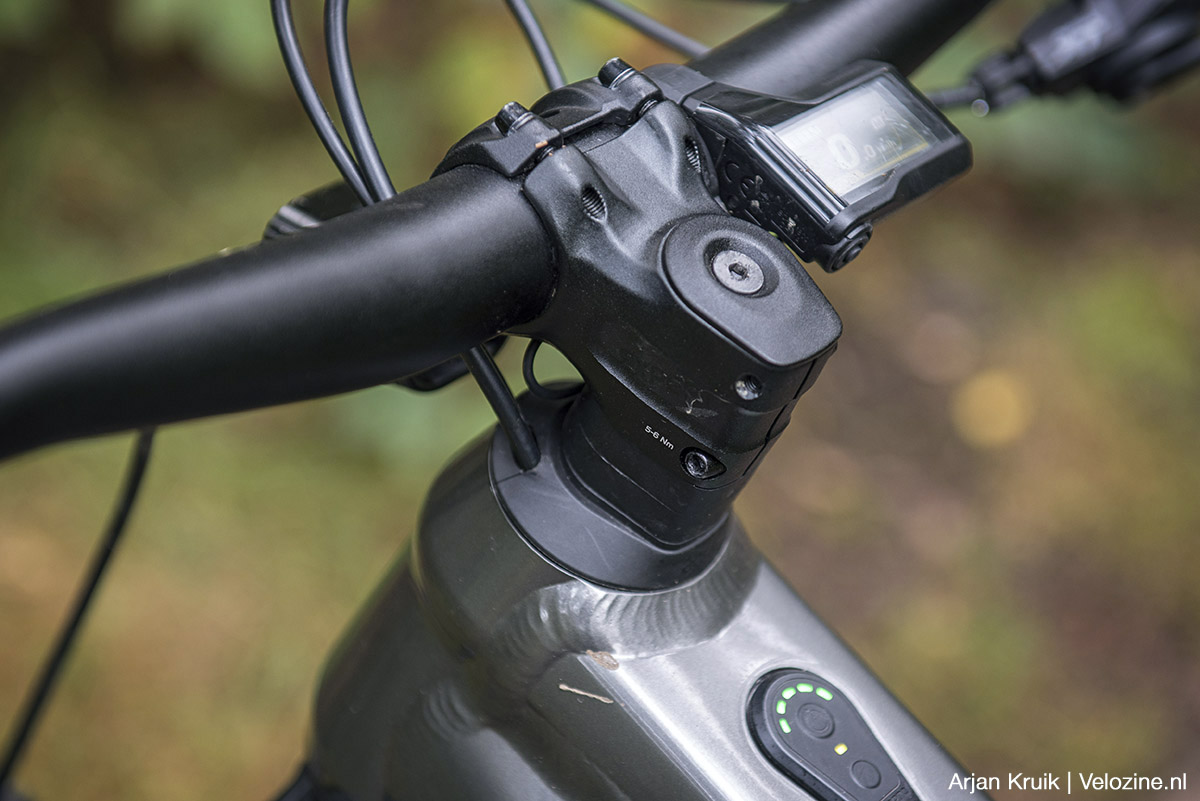 Laag is-ie ook. Niet zozeer qua zitbuis, die is met 445 millimeter niet eens zo heel kort, maar vooral voor wat betreft de balhoofdbuis. Die meet slechts 115 millimeter. Natuurlijk, daar hangt een vork onder met een veerweg van 170 millimeter, zodat je zeker niet met je kin op de voorband zit. Maar vanwege die korte balhoofdbuis is de stack met 637 millimeter wel wat aan de korte kant voor een fiets in deze klasse. Met een centimetertje extra hoogte zou ik niet ontevreden zijn. Aan de andere kant: om je handen wat hoger te krijgen – want dat is het punt dat ik hier wil maken – kun je ook een wat hoger stuur monteren.
