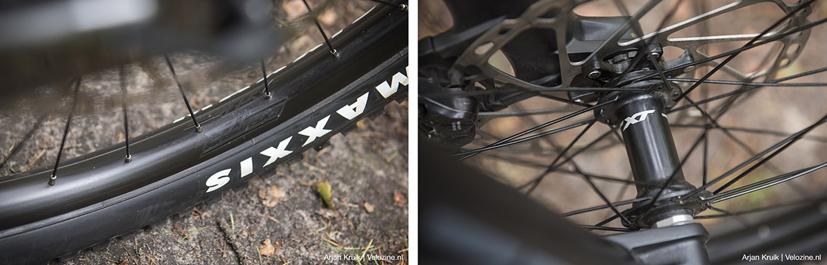 Ook de rest van de onderdelen laat niks te wensen over. De Maxxis-banden, een 29 x 2.5 Maxxis Assegai aan de voorkant en een 27.5 x 2.4 Maxxis Minion DHR II achteraan, bieden volop demping en grip. Met name die Assegai levert met z’n zachte Maxgrip-rubbermix grip zonder einde. En hoewel het Exo+-karkas niet het stevigste karkas is dat Maxxis in huis heeft, biedt het voldoende ondersteuning en heeft het gedurende alle (bijna) tienduizend negatieve hoogtemeters lekvrij overleefd. Hetzelfde geldt voor de wielen, met brede aluminium velgen uit eigen huis rond Shimano XT-naven.