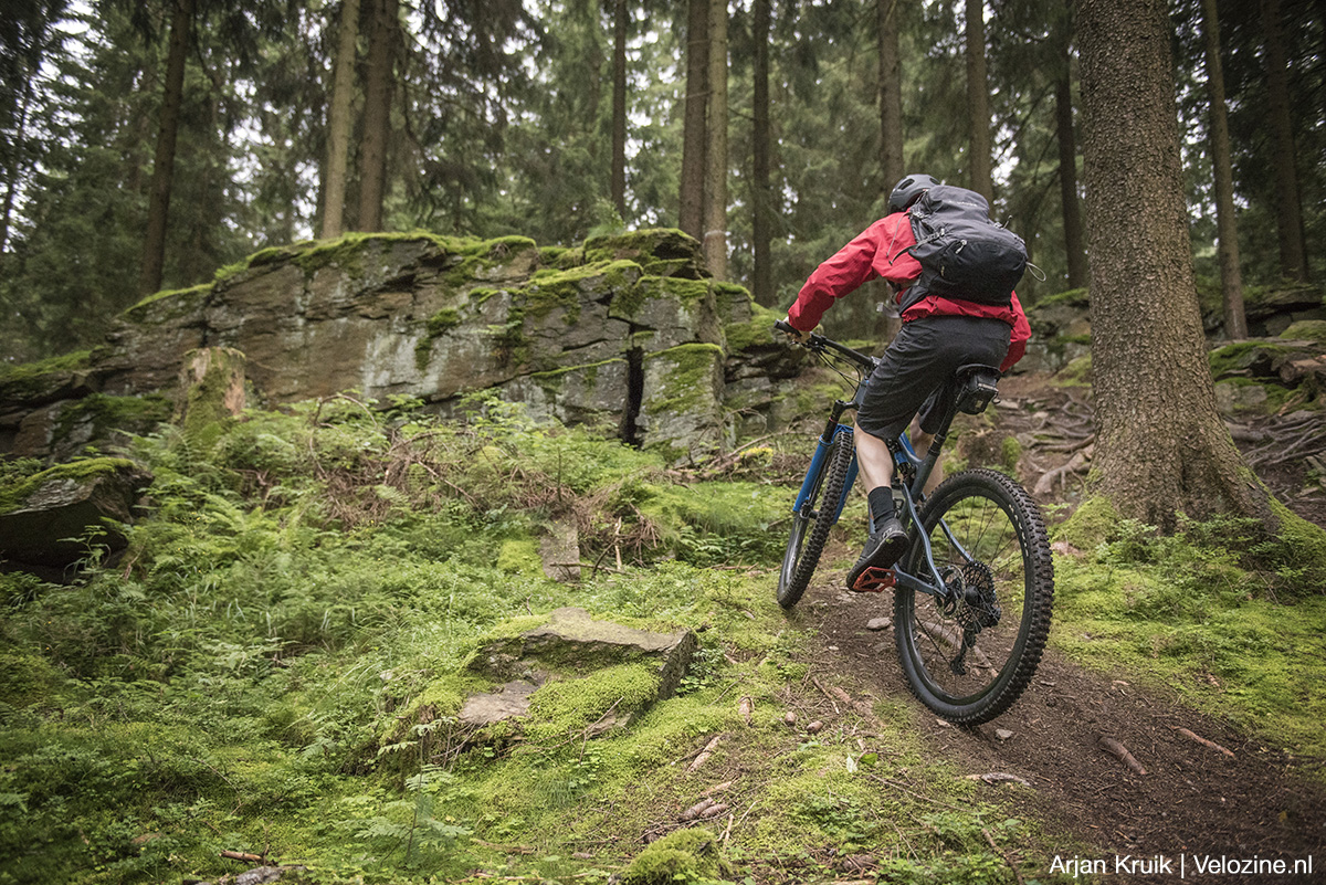 “...de listige zwarte afdalingen die ik later in Trailcenter Rabenberg overmeester, bevestigen de eerste indruk: wat is déze bike capabel als het pad omlaag gaat!”