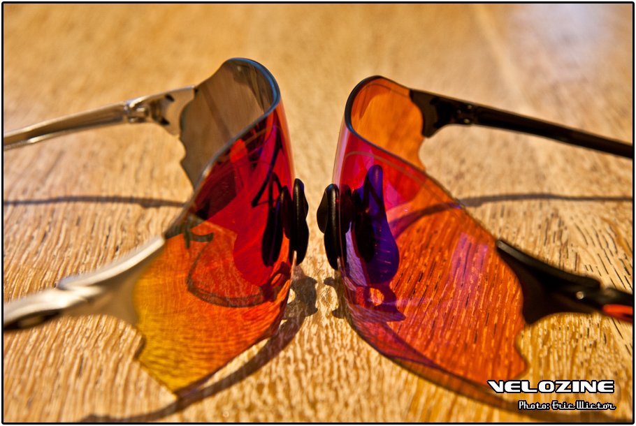 De lens van de oude (Sub)Zero was niet verwisselbaar. Ook dat “ontwerpfeature” is keurig overgenomen… en daarmee het grootste nadeel van deze bril. Rond de introductie zwierven er op de Oakley-site een tijdje foto’s van losse lenzen rond, inclusief de melding “interchangeable”. Maar die verdwenen. Ons vermoeden: De EVZero was bedoeld als bril met wisselbare lenzen, maar dat is later om welke reden dan ook ingetrokken. Dus: wil je meer flexibiliteit, kies dan een ander model, of kies voor de Photochromic lens die zelf schakelt tussen 23 en 69% lichtdoorlatendheid. Blijft nog dit: als je de lens beschadigt, heb je een probleem. Navraag bij Oakley’s klantenservice bracht het volgende antwoord: “In the event that you have damaged your lens through accidental damage, it will be probably be suggested for you to send them into us so we can assess what we can do.” Hmmm… dat zijn een hoop onzekerheden in één zin! Zeker gezien wat er de laatste tijd met Oakley gebeurt….