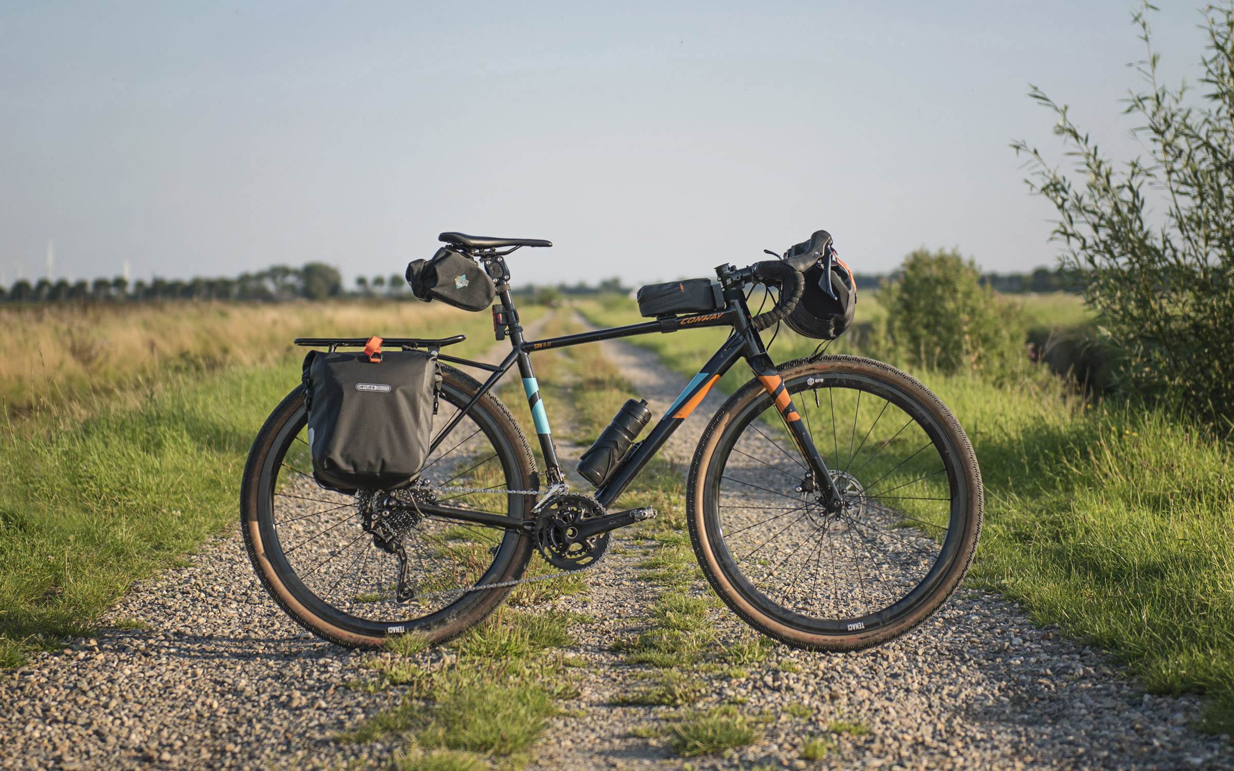We hebben de afgelopen zomer acht verschillende tassen geprobeerd op twee gravelbikes van Conway, elk met een andere configuratie. De ene gravelbike hebben we modern volgehangen met zadelpen-, frame- en stuurtassen, de andere hebben we meer klassiek opgetuigd, met twee achtertassen aan een bagagedrager. Met de hippe set-up creëren we een kleine 36 liter aan bagageruimte, de klassieke opstelling met achtertassen levert iets meer dan 38 liter op. Voordat ik je vertel over welke combinatie ons het best is bevallen, neem ik eerst even alle tassen die we gebruikt hebben met je door.