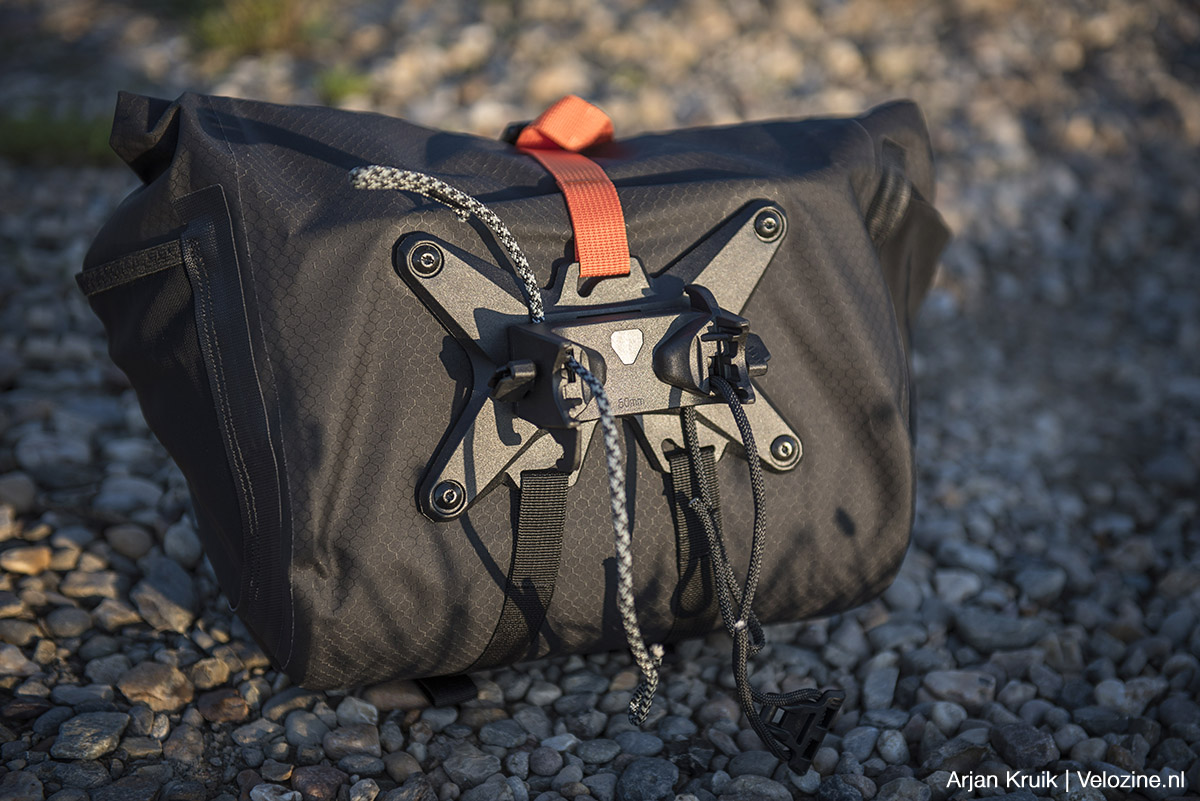 Met z’n 15 liter volume is de Handlebar-Pack vooral geschikt voor volumineuze zaken als slaapzak, donsjack of fleece-trui. Het is een simpele tas, feitelijk niet meer dan een waterdichte koker met aan beide kanten een rolsluiting. Dankzij een ontluchtingsventiel kun je je slaapzak of andere puffy items strak comprimeren.