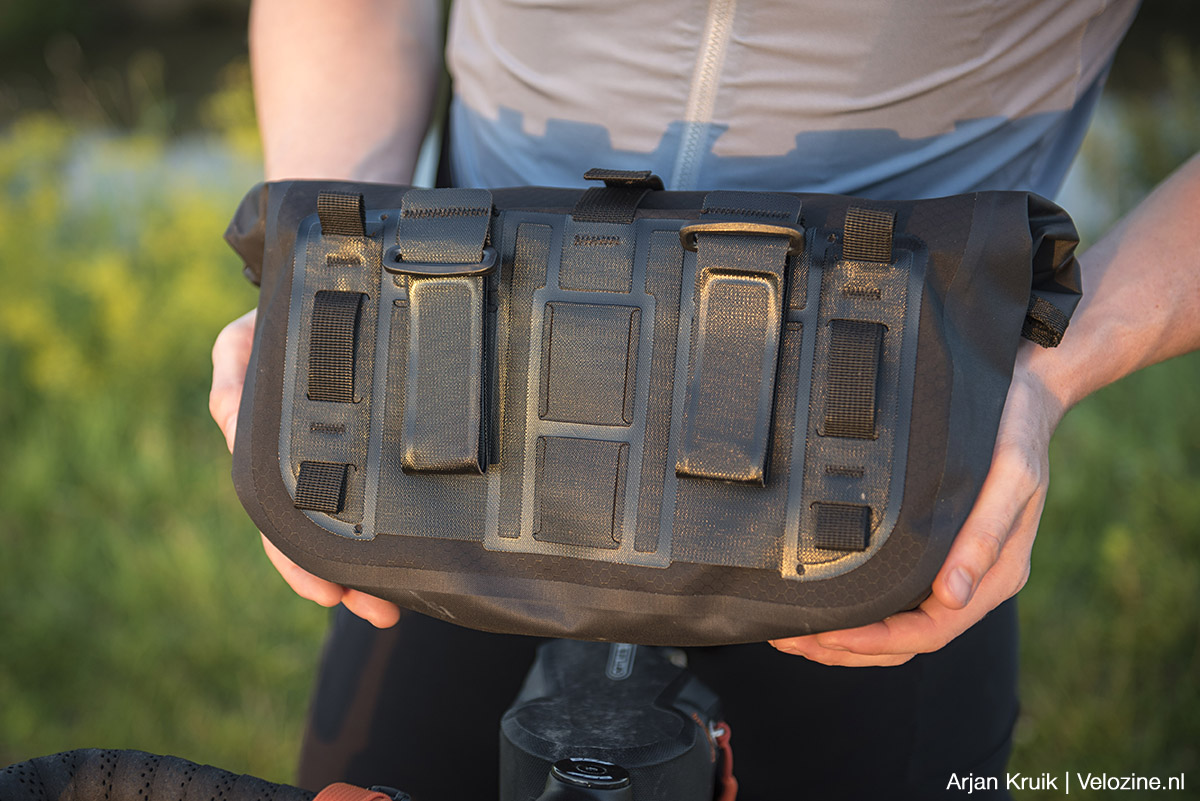 Met z’n nieuwe lichtgewicht bikepacking-tassen doet Ortlieb z’n reputatie eer aan. Alle tassen die we geprobeerd hebben zijn goed tot zeer goed bevallen. Natuurlijk, het geringe gewicht dat deze tassen kenmerkt heeft ook nadelen. Binnenvakken voor het opbergen van kleine spullen of documenten zoek je tevergeefs. En alhoewel het gebruikte ripstop-materiaal niet bepaald slijtgevoelig is, is het zwaardere, dubbelzijdig gecoate polyester weefsel dat je op bijvoorbeeld de klassieke Back-Rollers van Ortlieb vindt, nóg sterker en slijtvaster. Maar voor wie met een lichtgewicht uitrusting wil gaan gravelen of mountainbiken, telt een laag gewicht zwaarder dan een onverwoestbare constructie.