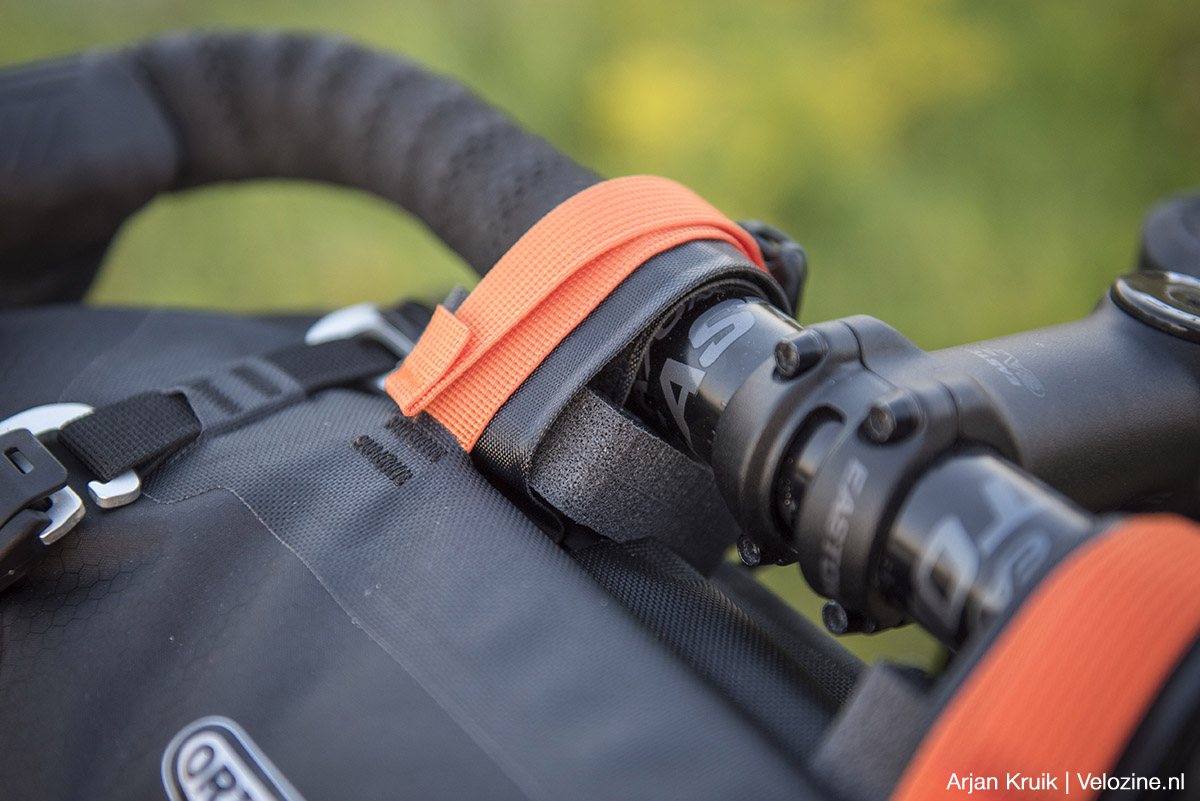 Vast? Vast! Verbazingwekkend, want de stuurtas hangt uitsluitend aan het stuur en wordt niét door de balhoofdbuis ondersteund. Er is dus niet alleen voldoende ruimte voor de rem- en schakelkabels, maar je krijgt ook geen krassen op de balhoofdbuis. Met als bonus dat er ook plek is voor je handen bovenop het stuur. Vanwege de niet geringe puntbelasting op het stuur ontraadt Ortlieb het gebruik van deze stuurtas op carbon sturen.