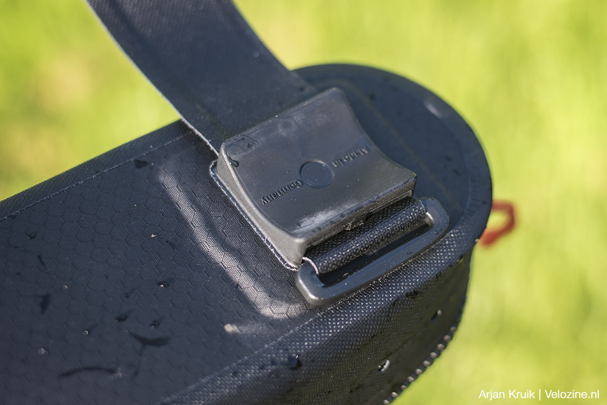 En dan zijn er nog wat details die hier en daar beter kunnen. Het Cockpit-bovenbuistasje, hoe fraai gemaakt ook, zouden we niet nemen. De rits loopt zwaar, de horizontale opening is niet praktisch en het tasje zelf is aan de brede kant. Ook de op zich zeer slim gemaakte snelkoppeling van de Ortlieb Seat-Pack QR zou beter kunnen. Als je een zadel hebt waarop het systeem past, dan werkt het feilloos. Maar op twee van onze zadels slagen we er niet in de quick-release te monteren. Gelukkig heeft Ortlieb ook een grote zadeltas in huis met een conventionele bevestiging met bandjes.