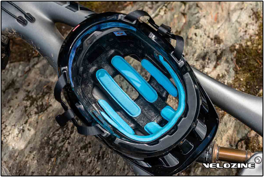 Een andere veiligheidsvoorziening bij mijn Tectal is het SPIN-systeem. De afkorting SPIN staat voor Shearing Pad INside. In de kussentjes aan de binnenkant van de helm is onder het schuimlaagje een laag gel aangebracht. Volgens POC kan hierdoor de buitenschaal enigszins verdraaien ten opzichte van het hoofd, waardoor de bij een val optredende rotatiekrachten – die voor een belangrijk deel verantwoordelijk zijn voor hersenletsel – geneutraliseerd zouden worden.